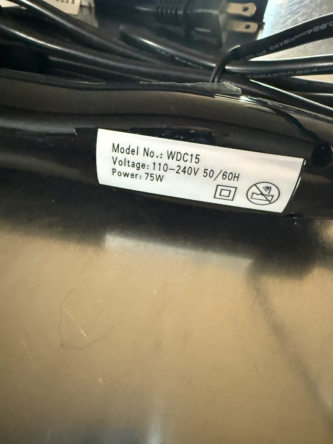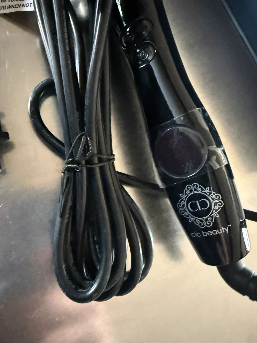 Cic Beauty curling iron, model WDC15. It's 75W and operates on 110-240V. This tool is for styling hair.