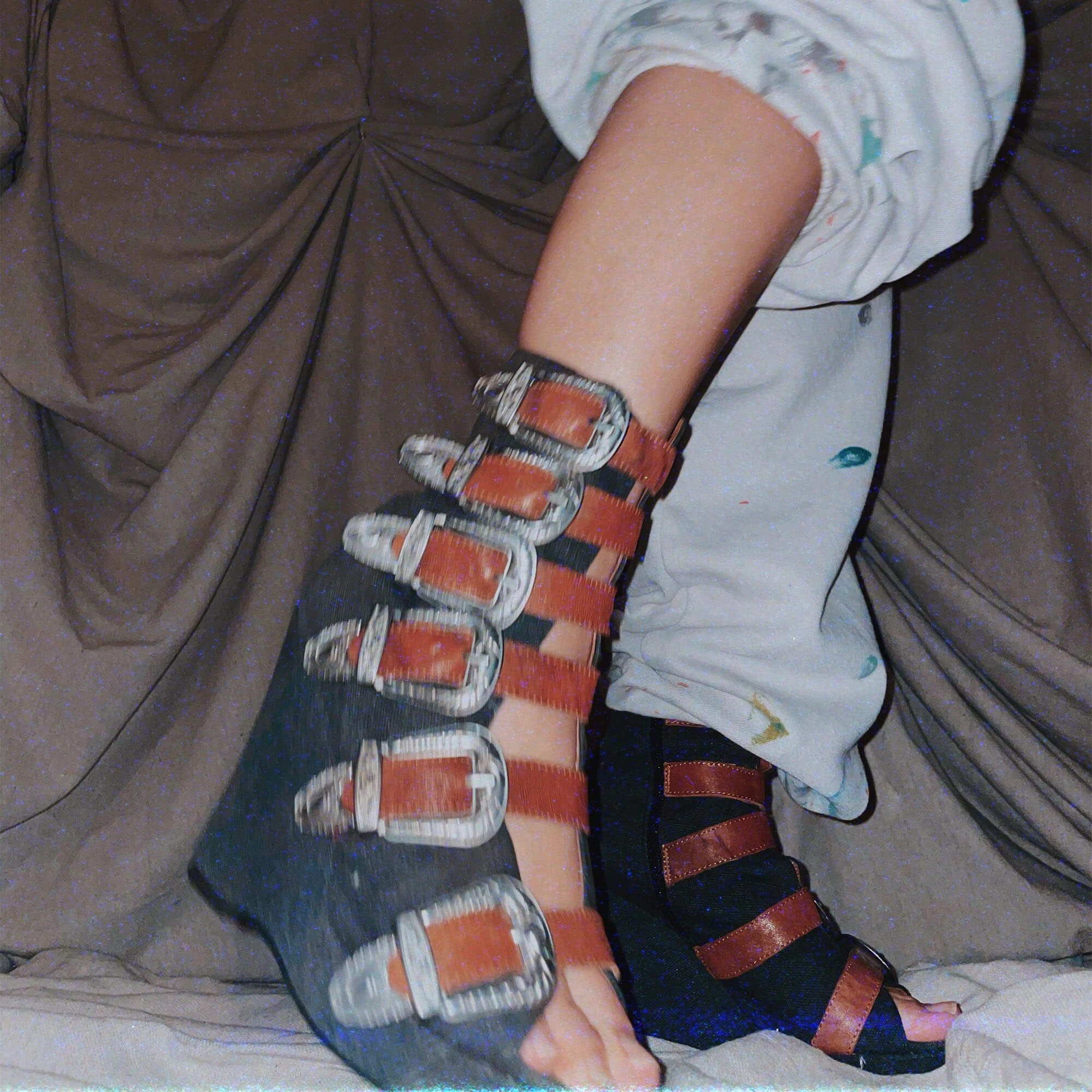 navy blue w buckles gladiator platforms open toe sandals shoes