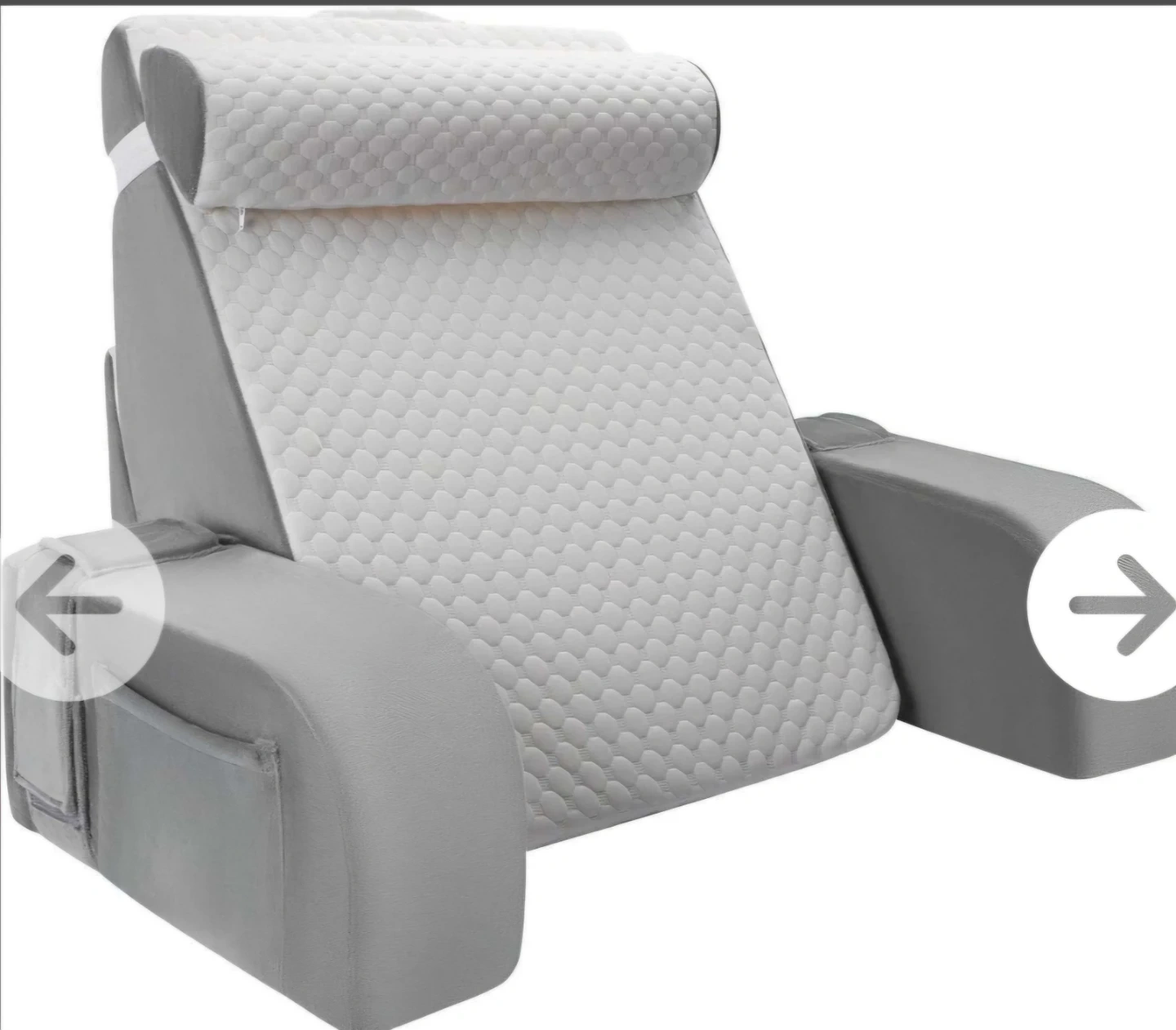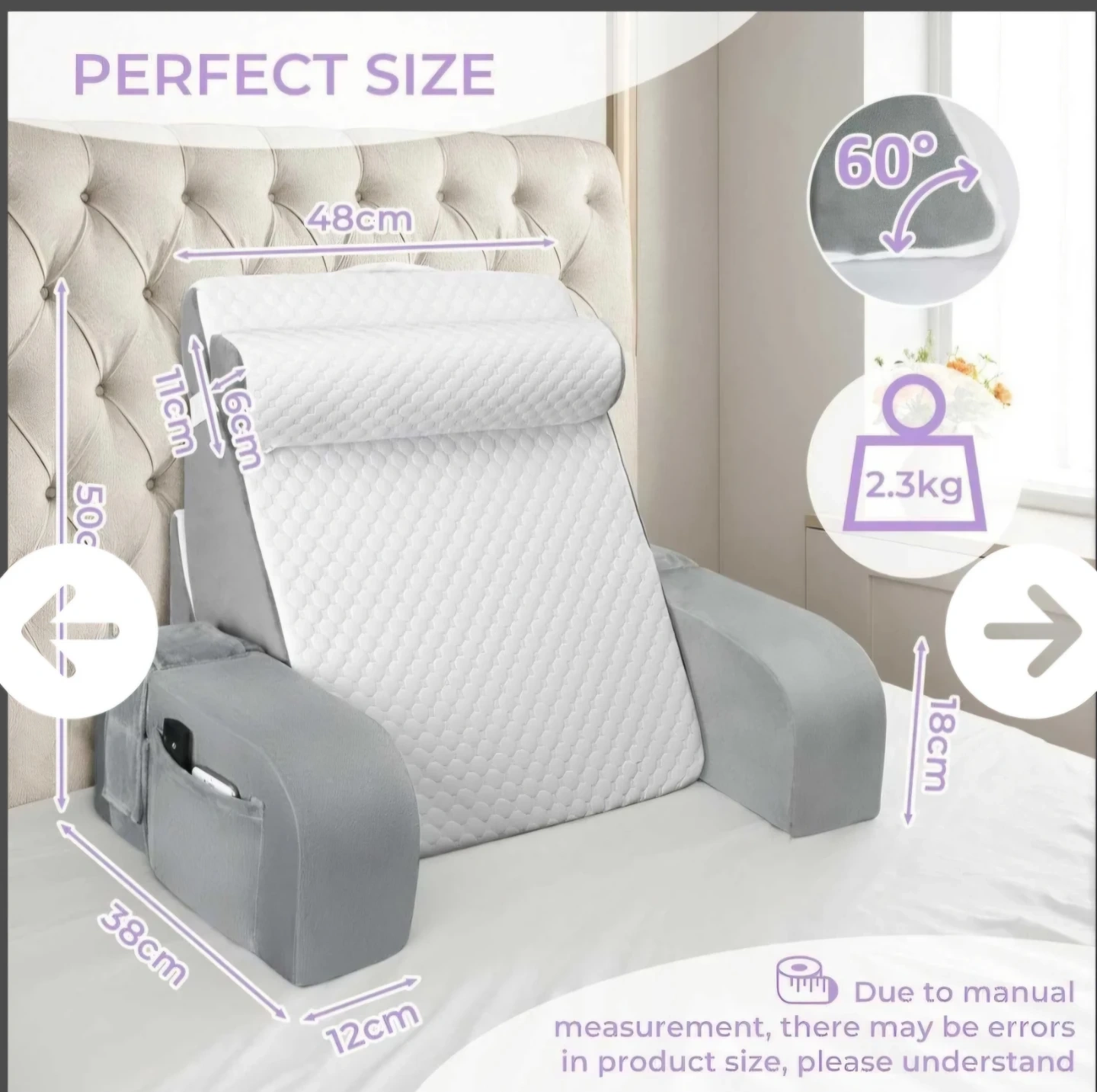 This bed wedge pillow offers a comfortable and supportive way to recline. It's made with soft, quilted fabric and includes a detachable headrest. The pillow has side pockets for convenient storage. Its ergonomic design provides a 60-degree incline for reading or resting.