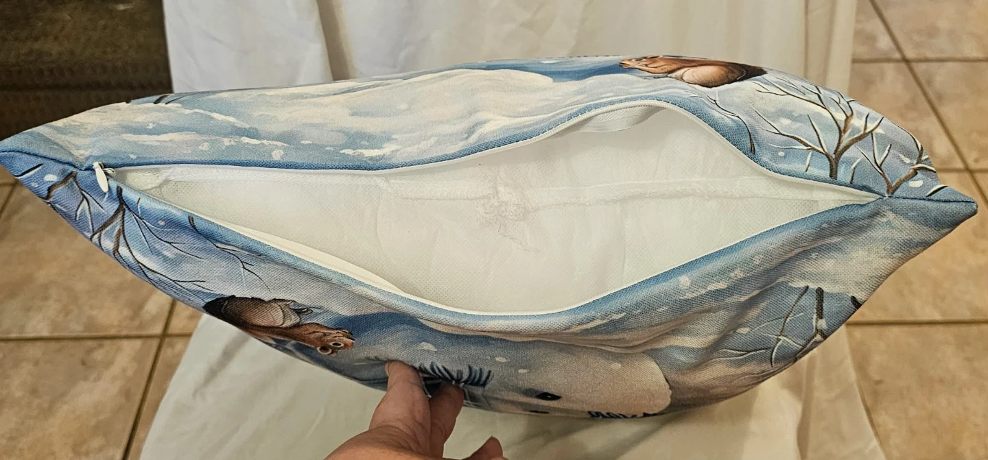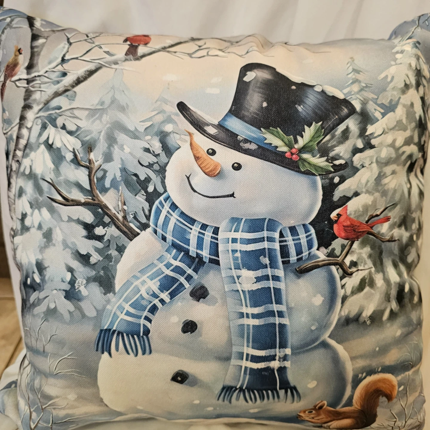 This Multi-Coloured Mera Linens Snowman Christmas Decorative Pillow is Brand New and never used. No tags attached.