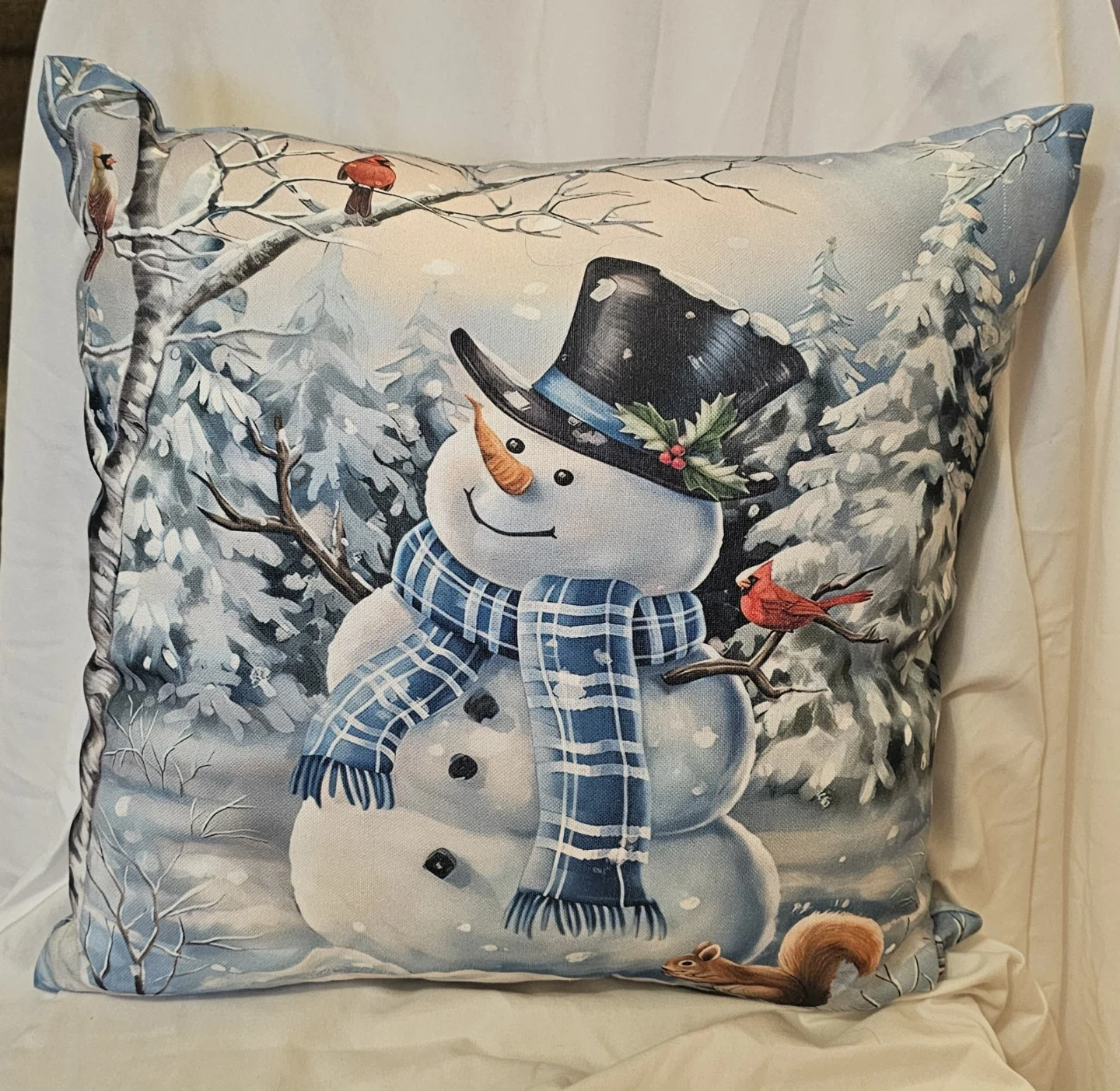This Multi-Coloured Mera Linens Snowman Christmas Decorative Pillow is Brand New and never used. No tags attached.