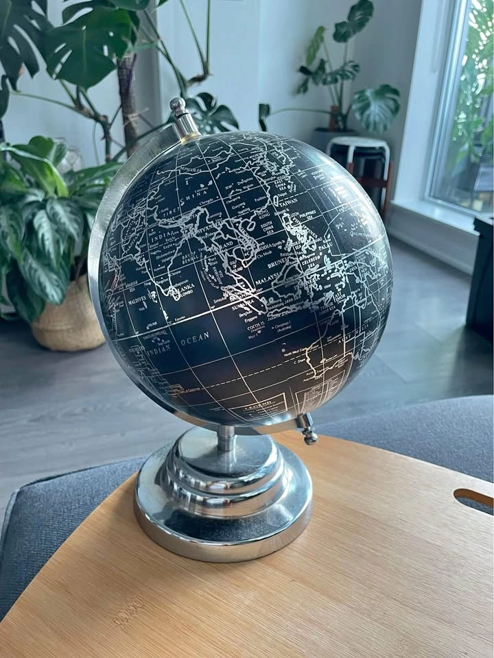 The black and silver design makes this globe very chic. It would be a great addition to any room. This globe spins, so give it a spin, close your eyes and point to your next vacation destination.