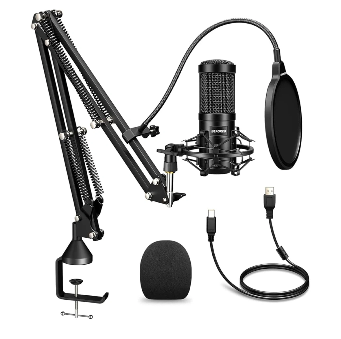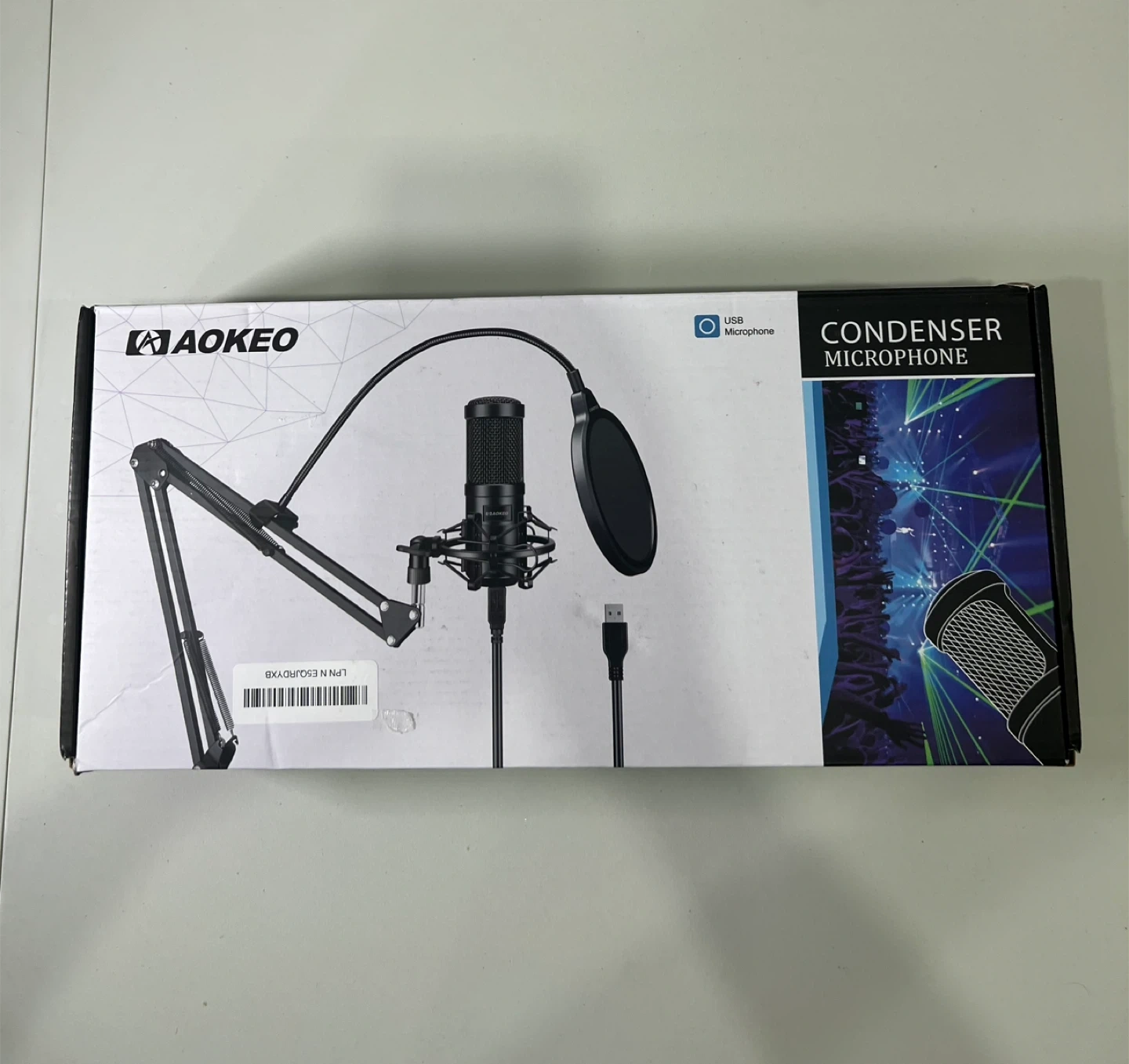 33Selling a brand new Aokeo USB Condenser Microphone Kit! It comes with everything you need to get started with recording. Included components: - Microphone - Pop filter - Adjustable scissor arm stand - Table mounting clamp - Shock mount - Foam windscreen - USB cable Everything is still in its original packaging and has never been used