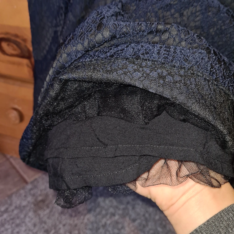 3 layers of skirt made of polyester and some tulle can be found at the bottom of 2 of them.