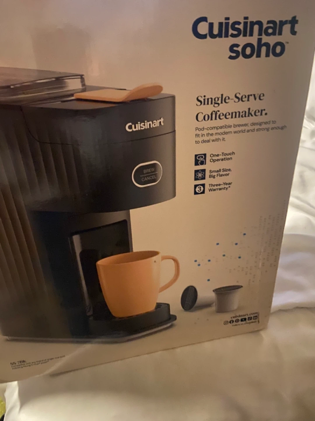 Selling a Cuisinart Soho Single-Serve Coffeemaker. It's pod-compatible and designed to fit in the modern world. Enjoy one-touch operation and a small size with big flavour! Comes with a three-year warranty too