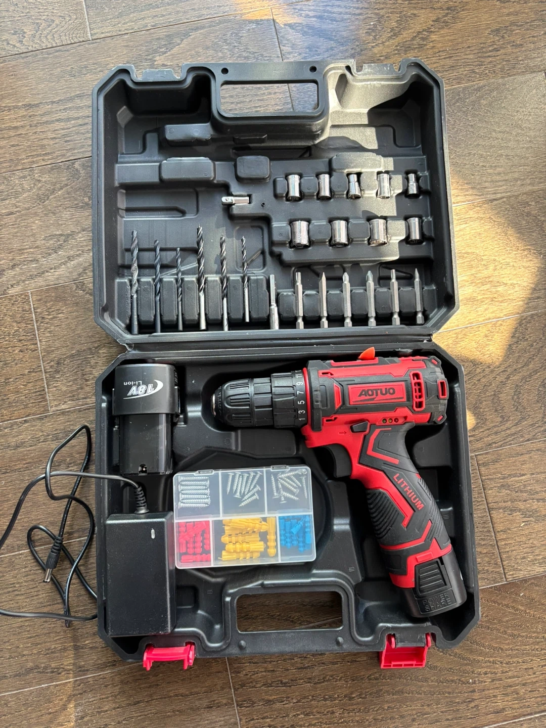 65Selling an AOTUO cordless drill driver kit! It comes with a variety of drill bits and accessories, all neatly organized in a carrying case. Perfect for DIY projects around the house!