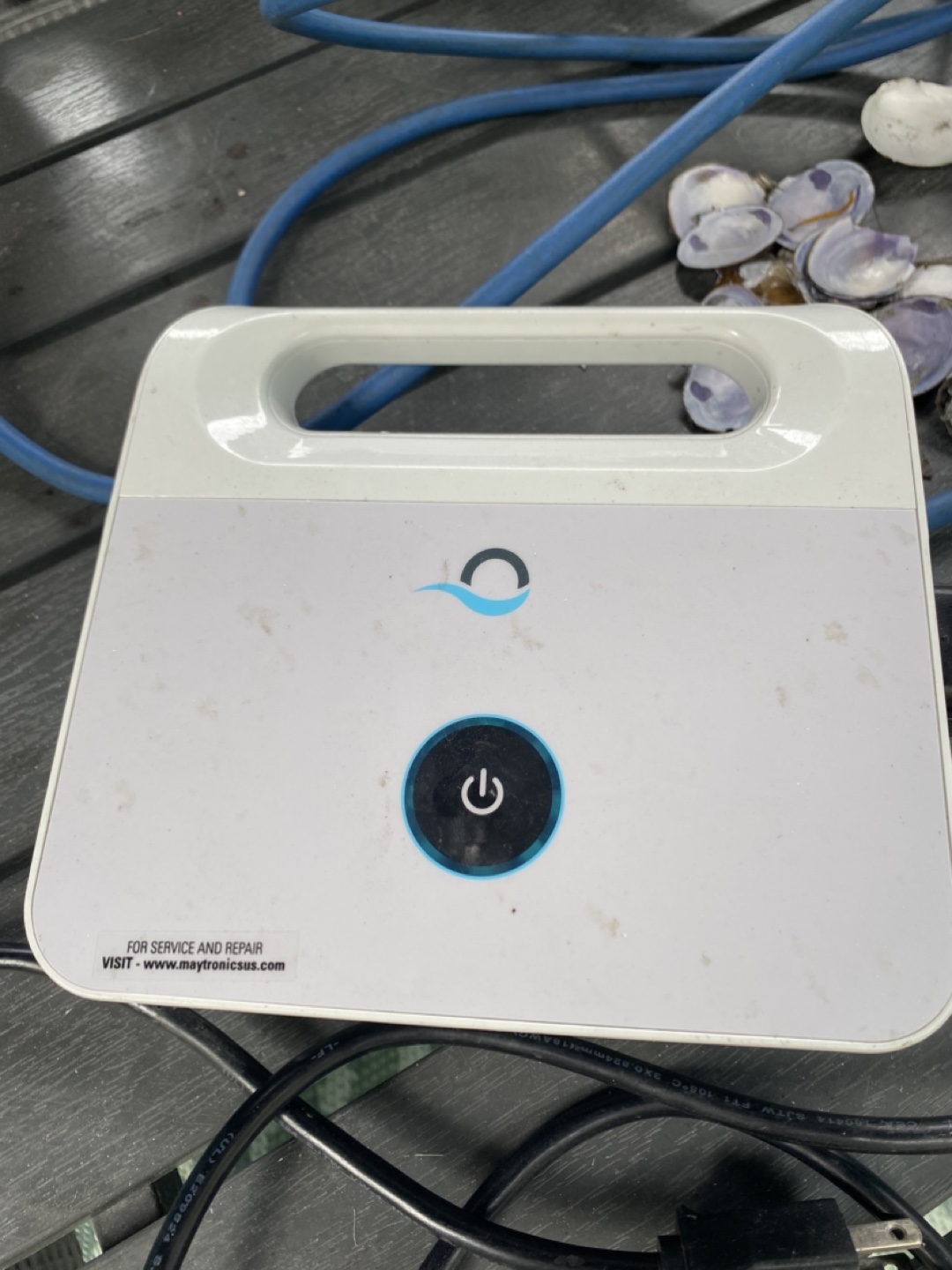 Selling a Dolphin Active 10 robotic pool cleaner. It's in good condition and ready to keep your pool sparkling clean! It features a blue handle and a filter basket.