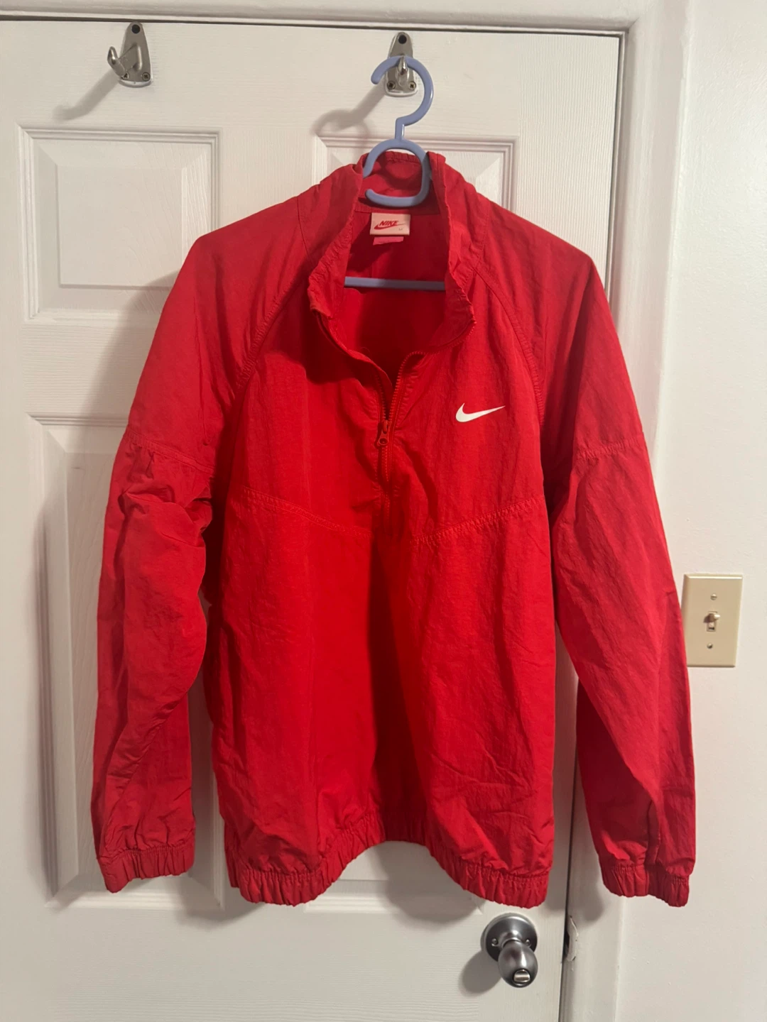 Selling a cool Nike x Stussy windbreaker! It's in a vibrant red colour and size M. Perfect for layering or wearing on breezy days. Features the iconic Nike swoosh on the front and the Stussy logo on the back!