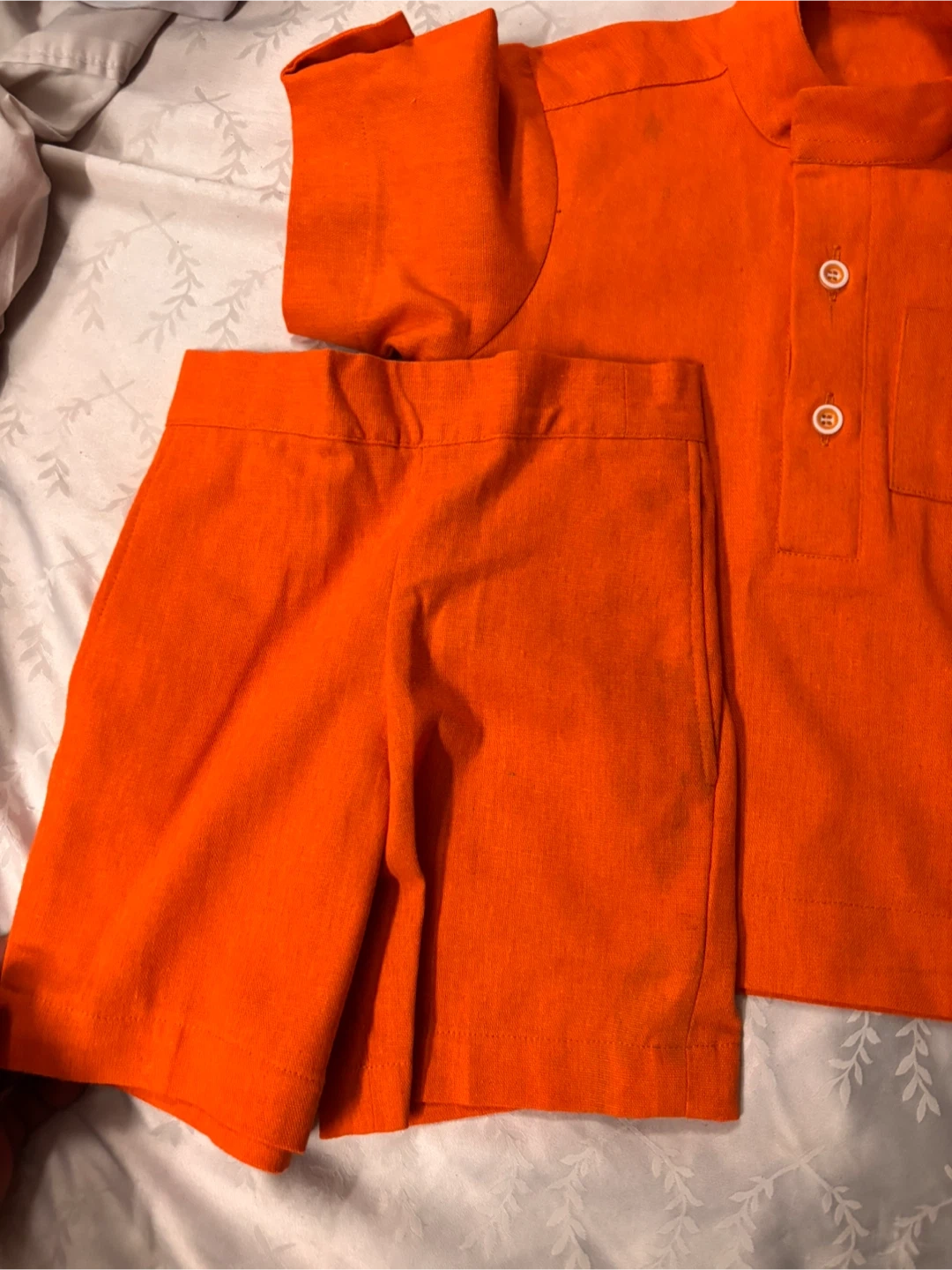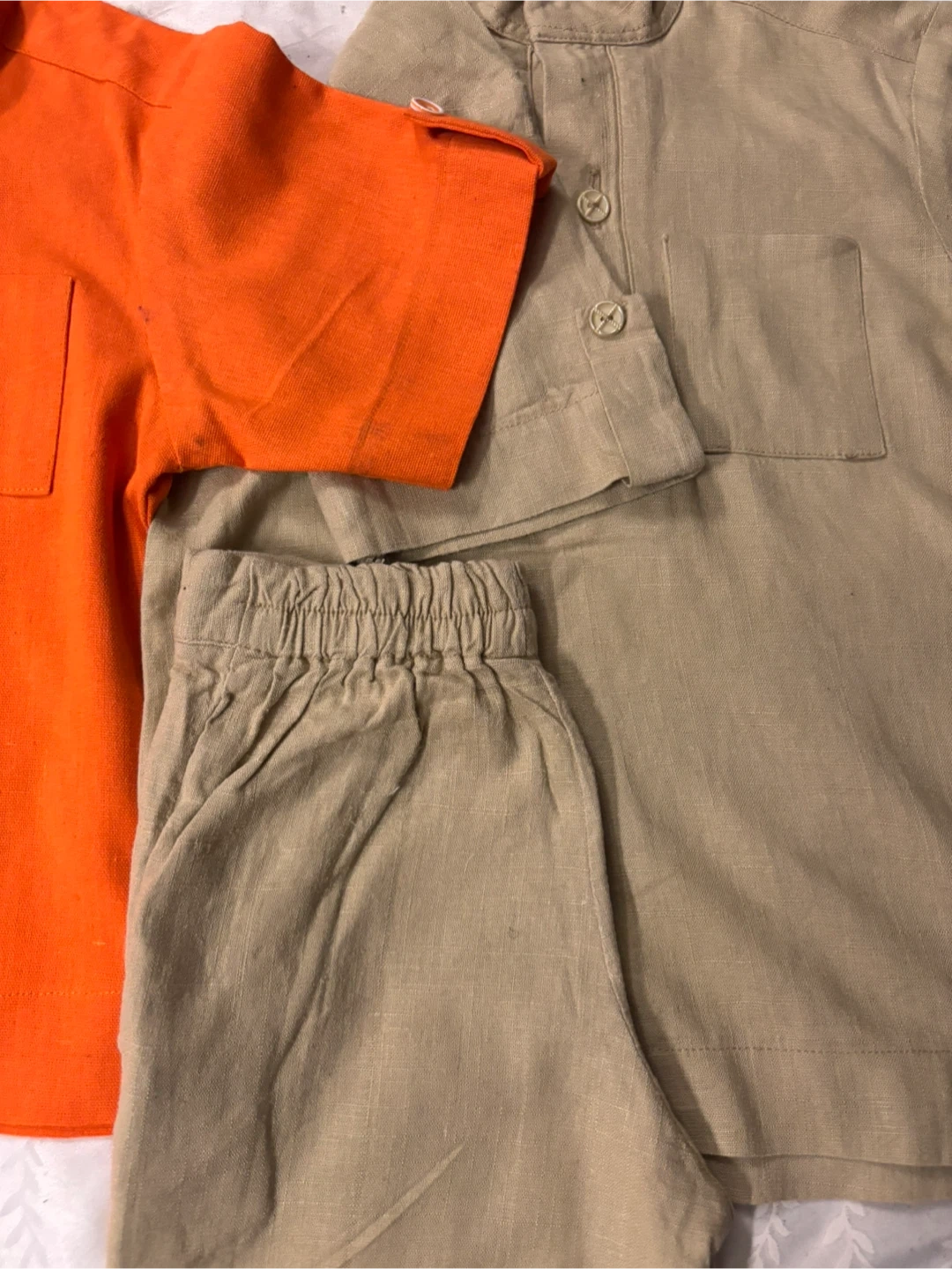 A cute little outfit from Trendy by Deb Includes a short-sleeved shirt and shorts in beige and orange. Perfect for keeping your little one comfy and stylish.