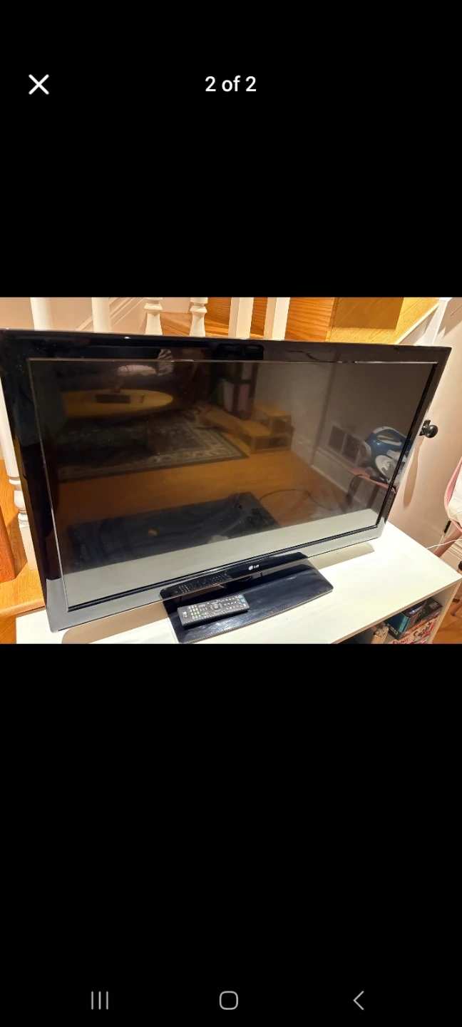 LG 40-inch flat screen TV. It's black and comes with a remote control. Includes HDMI and component inputs.