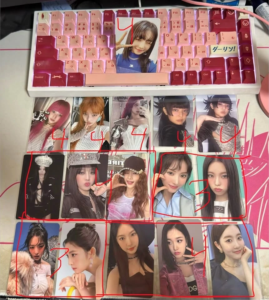 Miscellaneous official girl group photo cards. Price in CAD. No trades. Meet in Richmond, or delivery for a fee. Check my other listings. Includes groups like Itzy, Aespa, Le Sserafim, Ive, Stayc, Illit, Blackpink, Gidle, Idle, Nmixx, Red Velvet, and Twice.