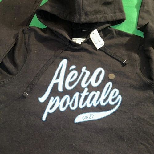 This new Aeropostale Jr Girl Black Hoodie in size Large features a solid black color with a blue and white logo graphic. Made from a comfortable cotton blend fabric with long sleeves and a pullover closure, this hoodie is perfect for everyday wear. The hooded design and regular fit cater to the needs of teenagers looking for a trendy yet practical addition to their wardrobe. Ideal for all seasons.