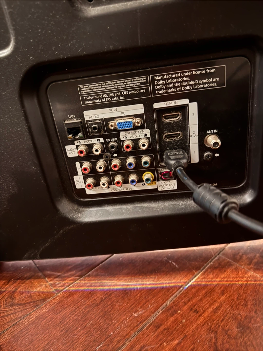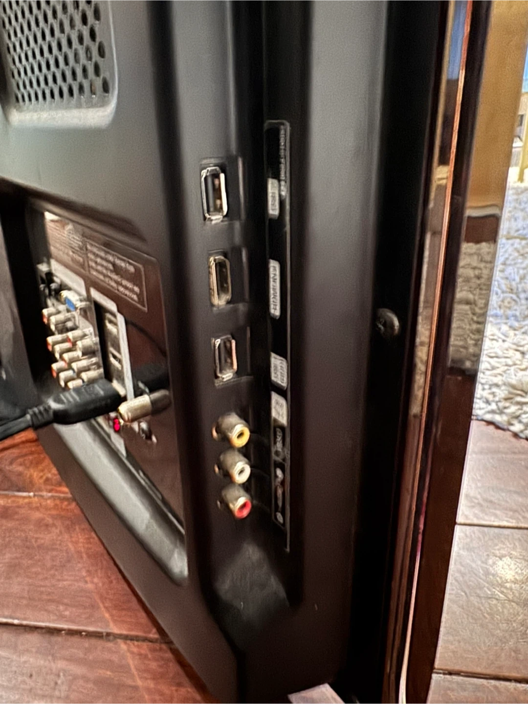 This is a Samsung flat screen television. It has multiple HDMI and audio input ports.