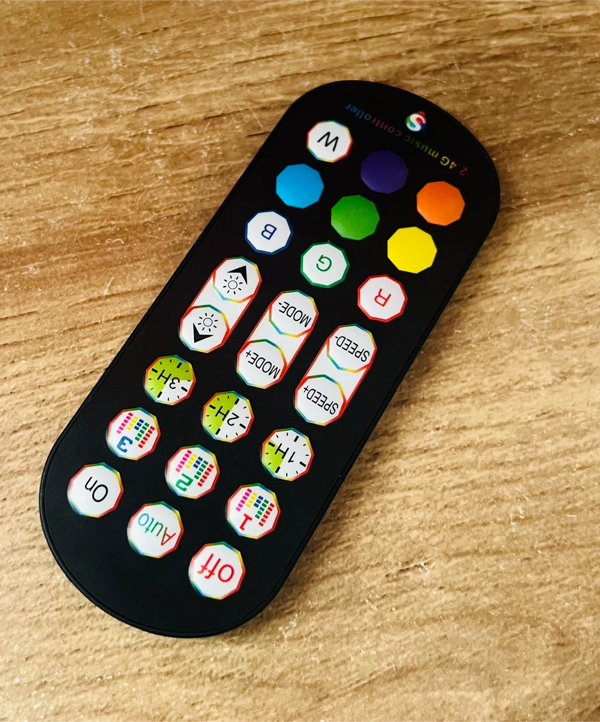Modern nightstand/bedside table in excellent condition. Clean natural wood look with a built-in LED light under the drawer (multiple colors and brightness levels). Comes with a remote control, and the light can also be controlled through an app.