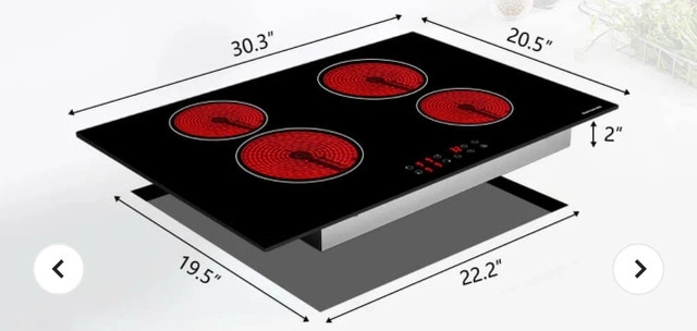 Selling a brand new Thermomate electric cooktop with four high-power burners and a total output of 6.0kW. It features an exclusive design with different power levels for versatile cooking. Dimensions: 30.3" x 20.5" (overall), 19.5" x 22.2" (underneath), 2" (height). Burners: 1.2kW and 1.8kW. It's brand new and ready to install. Asking $300. If the ad is up, it's still available!