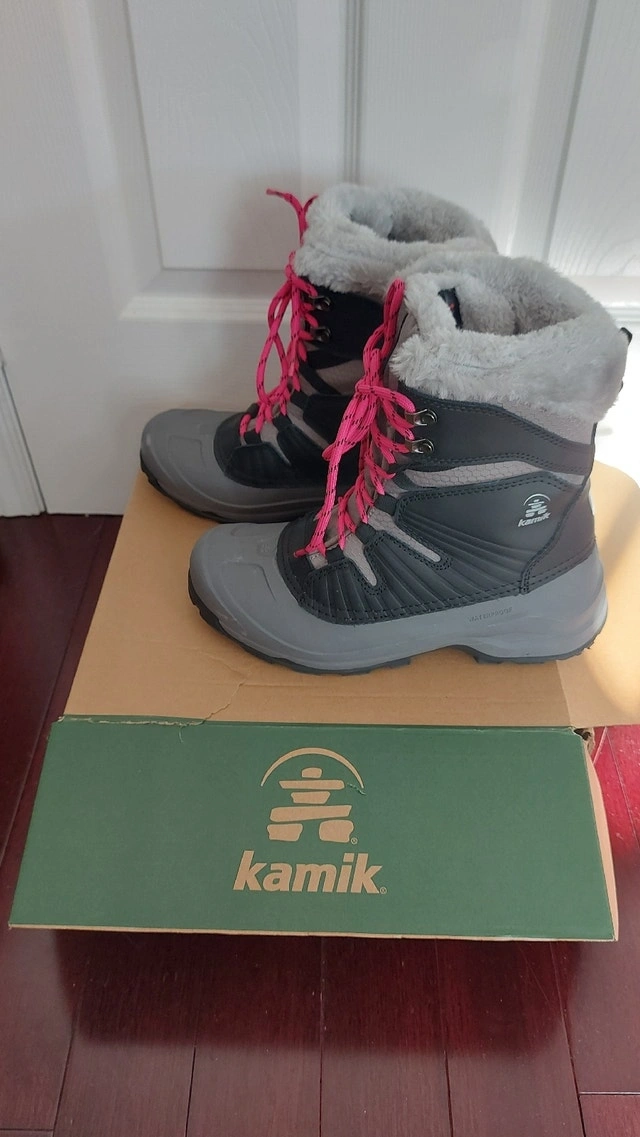 Bought these on November 4th. Original price was $160, I paid $120. I only wore them twice, but they're too big for me as I'm a size 6.5. These are a US size 8 or EU 41. They are very warm, rated for -40°C. The original box is ripped. The boots came with a couple of scuff marks but are in great condition overall. They felt too heavy and clunky for me, like hockey skates or snowboard boots. The tops are quite stiff, so you'll be walking more with your calves. Pickup is at Tower Hill Plaza on Bathurst in Richmond Hill only.