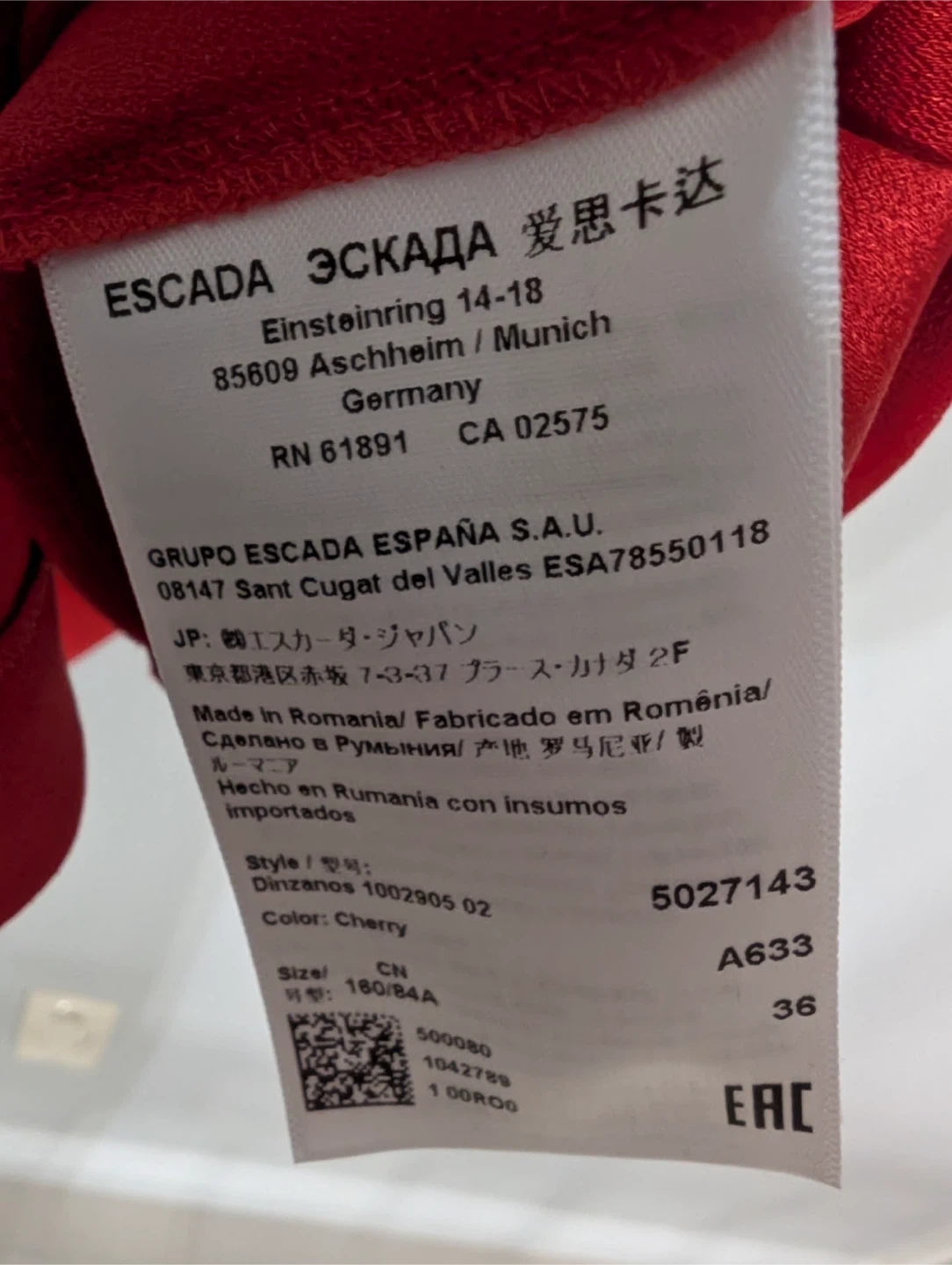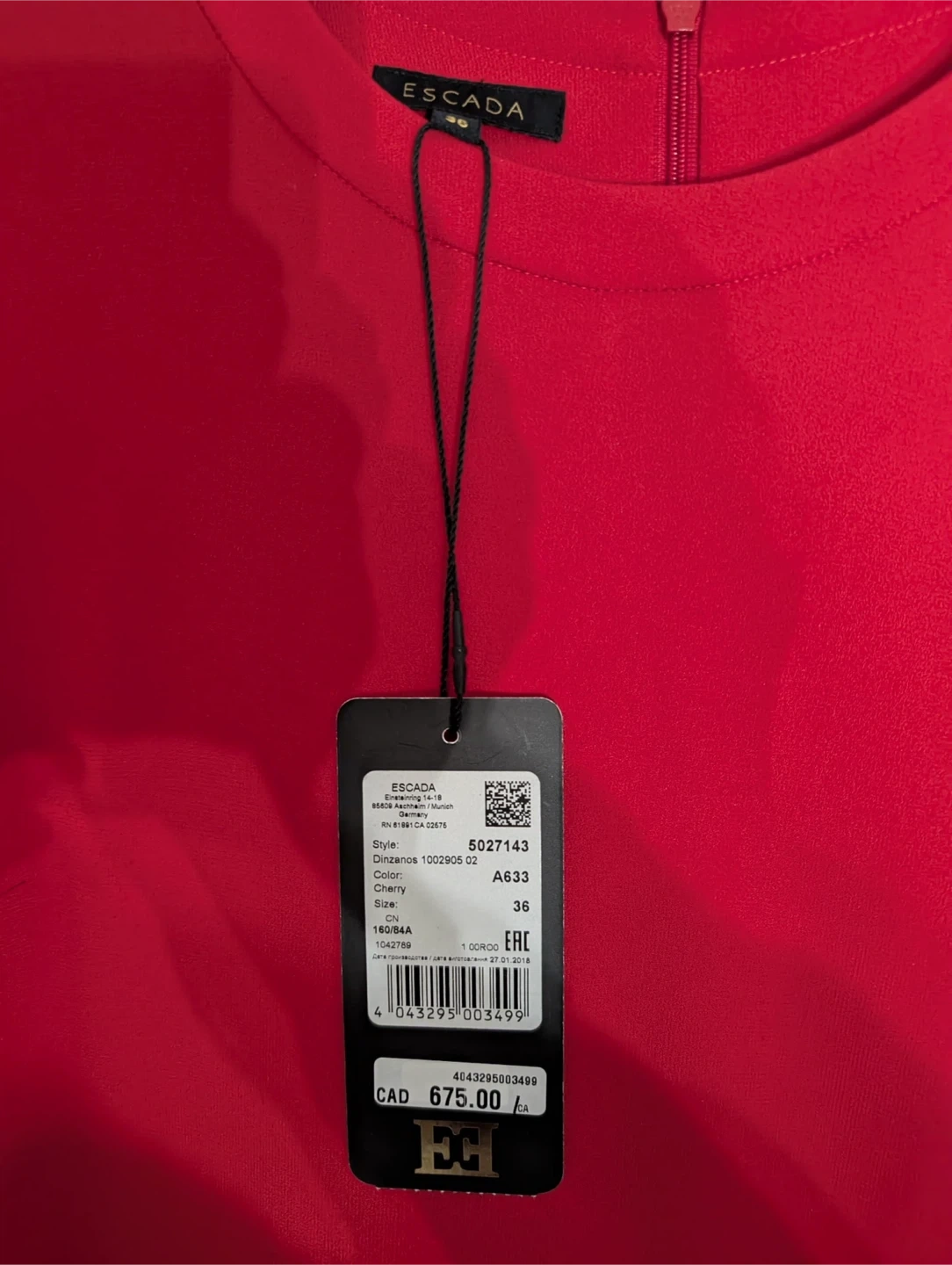 New Escada Women's Red Cherry Dress Size 36