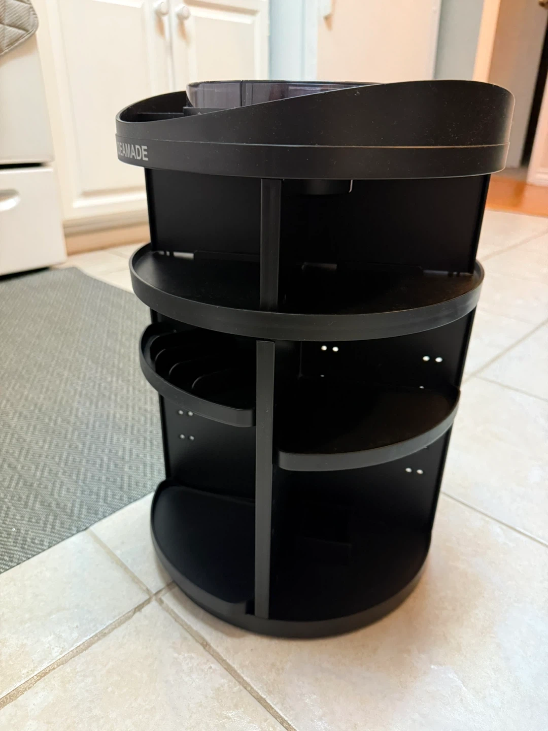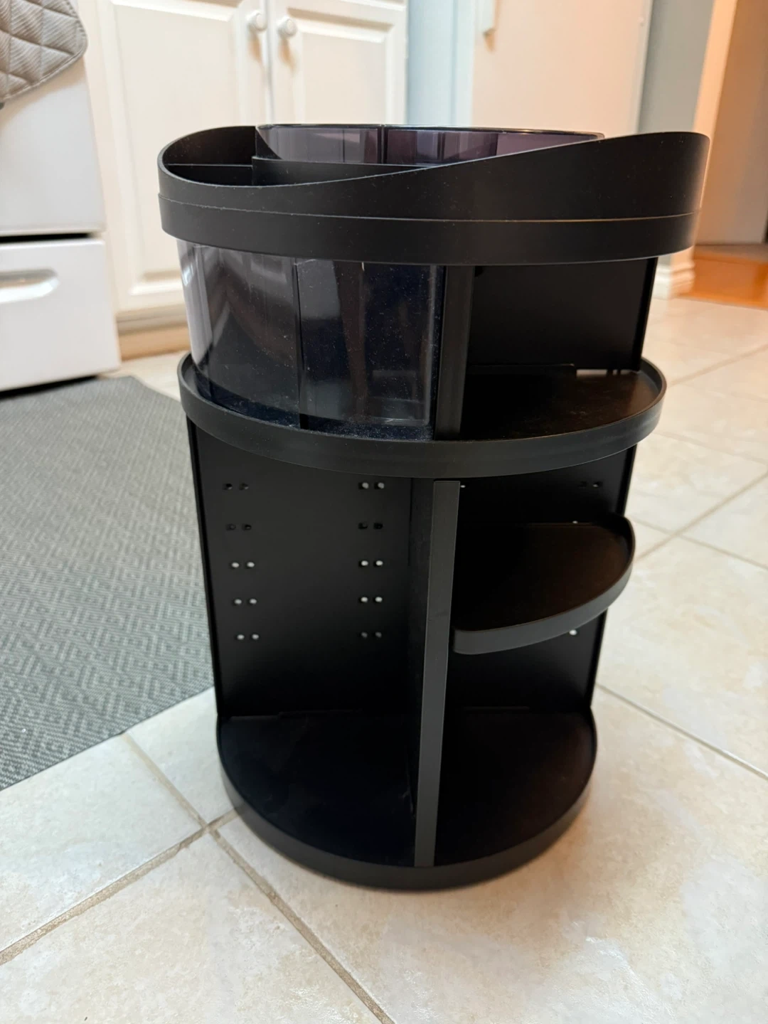 Here's a Ideamade rotating makeup organizer in black. It's perfect for keeping all your cosmetics tidy and easily accessible. It rotates 360 degrees, so you can always find what you're looking for!