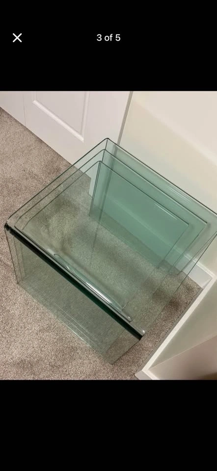 Buy & SellGlass side tablesGlass side tables$250The biggest size is 16.5 inches all around. Feel free to message if you have any questions!WHERE TO MEETSetonView MapSELLERverifiedJohnSeton1117 reviews0 chats·0 favorites·8 viewsSEND CHAT TO SELLERHi John! I’m interested in your listing.Hi John! I’m interested in your listing.Get the Karrot app to chatSign In to chat
