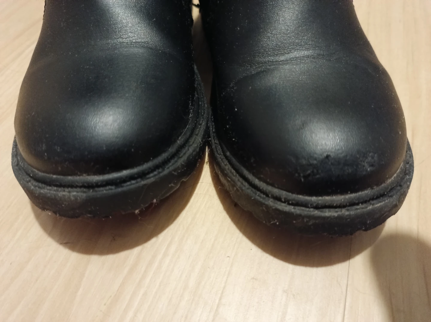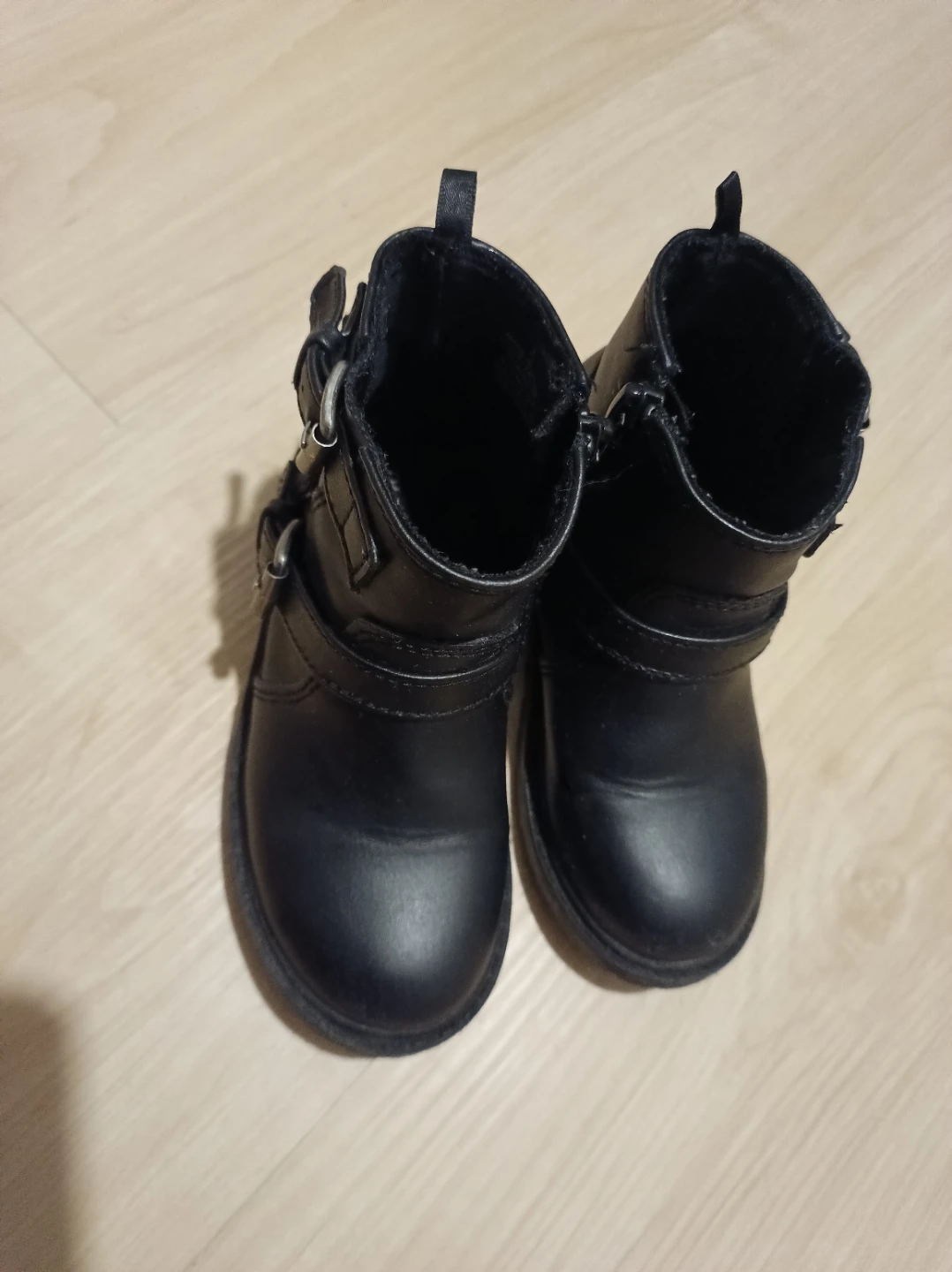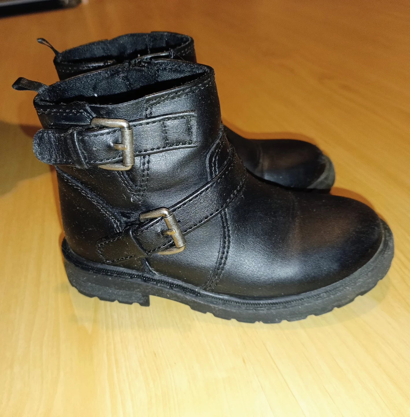 Black faux leather toddler boots from Old Navy. Features two buckle straps and a side zipper. Size is 8