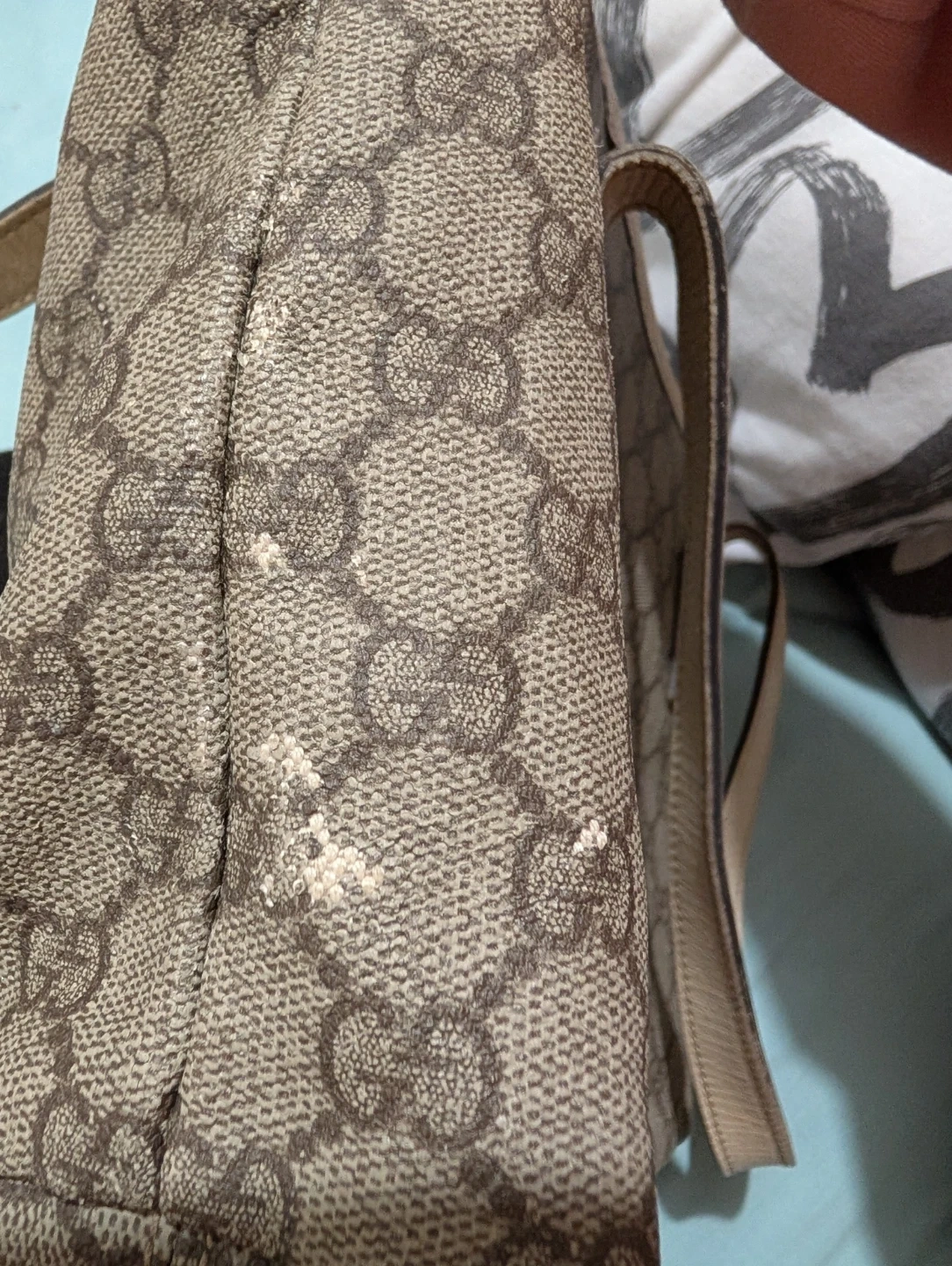 Has tare/material fading on bottom corner and side of bag as seen in photos (due to condition, $200 is the lowest price)