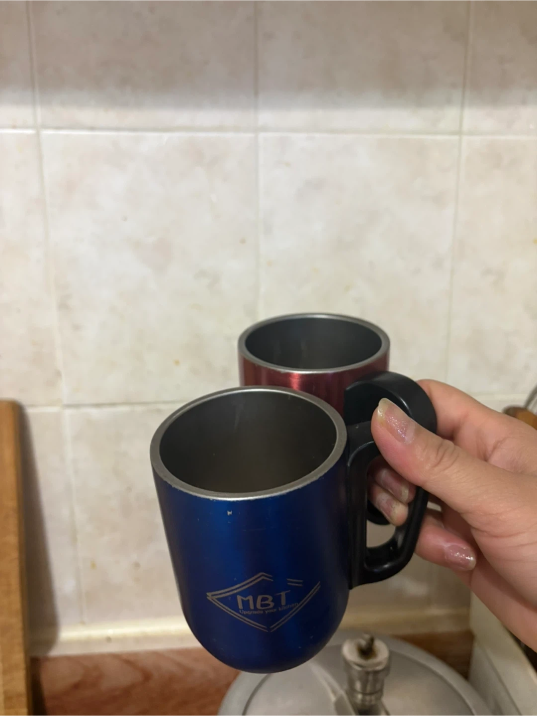 I have a couple of drinkware items up for grabs! There's an MBT stainless steel mug, perfect for keeping your drinks hot or cold. Also, a cute strawberry-themed cup with a straw, great for summer beverages