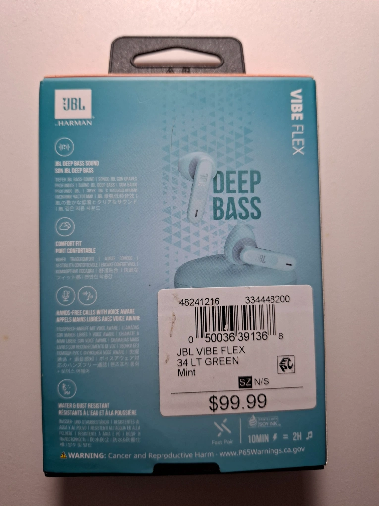 New JBL Vibe Flex wireless earbuds.