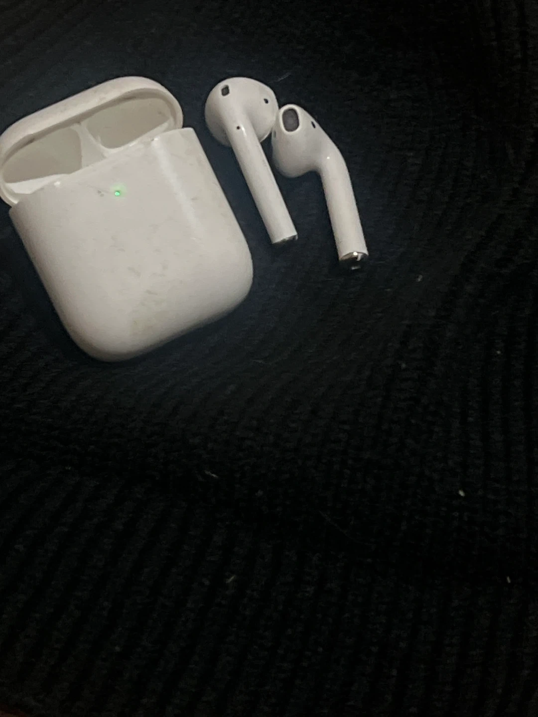 Apple AirPods (2nd generation) wireless earbuds. Includes the charging case. They provide a seamless wireless listening experience.🧡