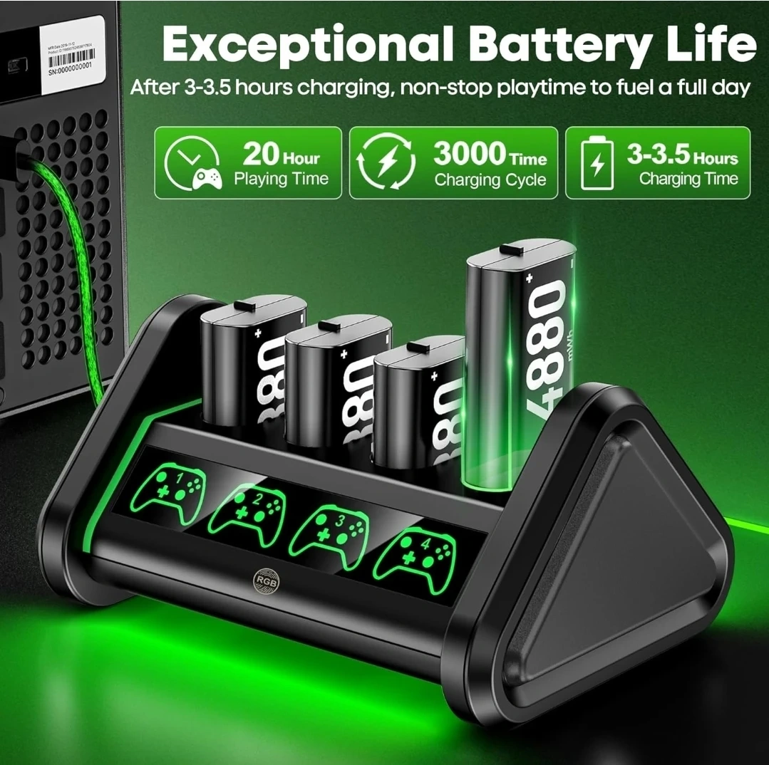 ⚡ Designed for Xbox gamers who want long playtime and convenient charging.