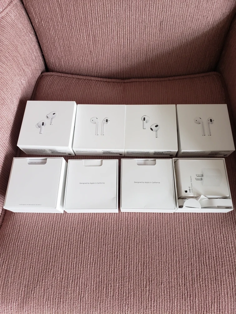 1000+Four boxes of brand new Apple AirPods (2nd Generation) and third generation empty boxes. $10 each.