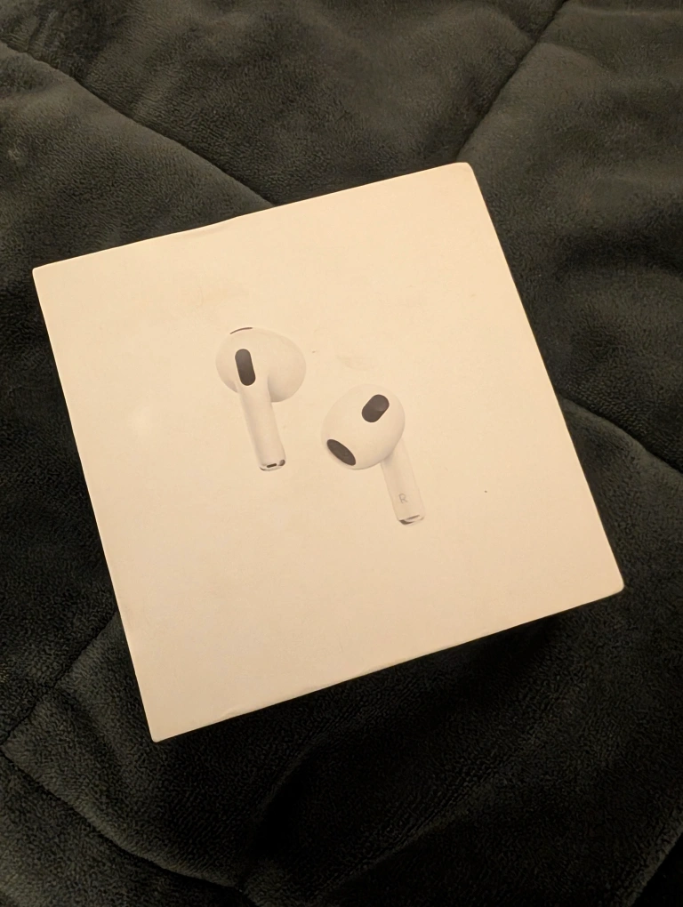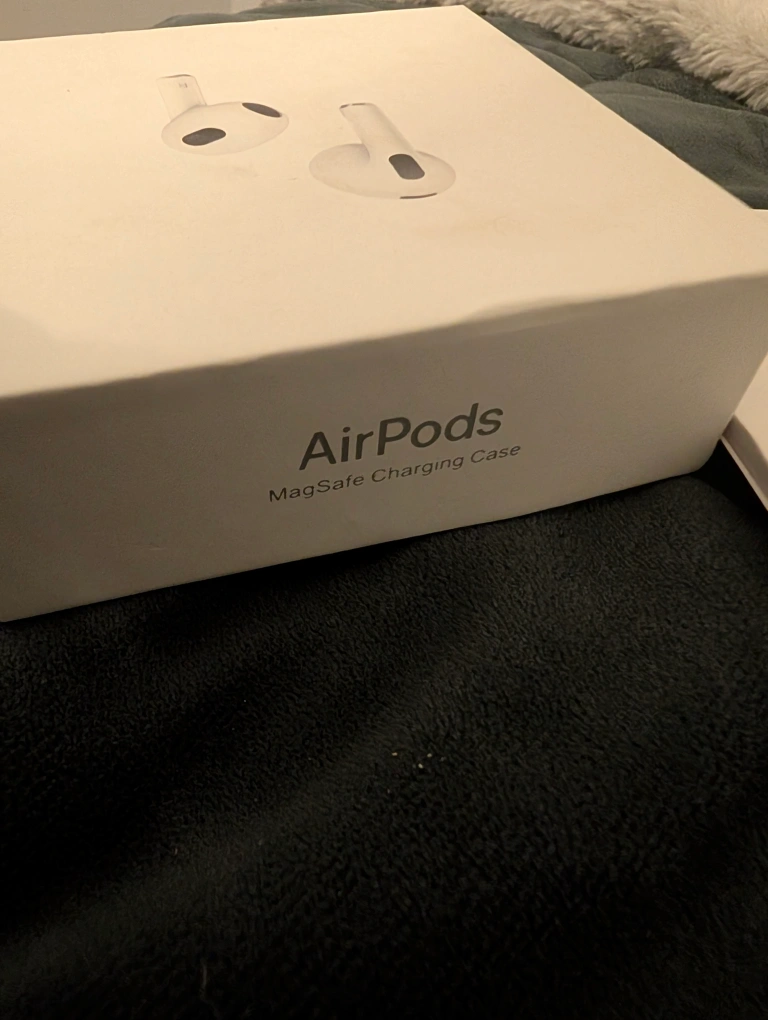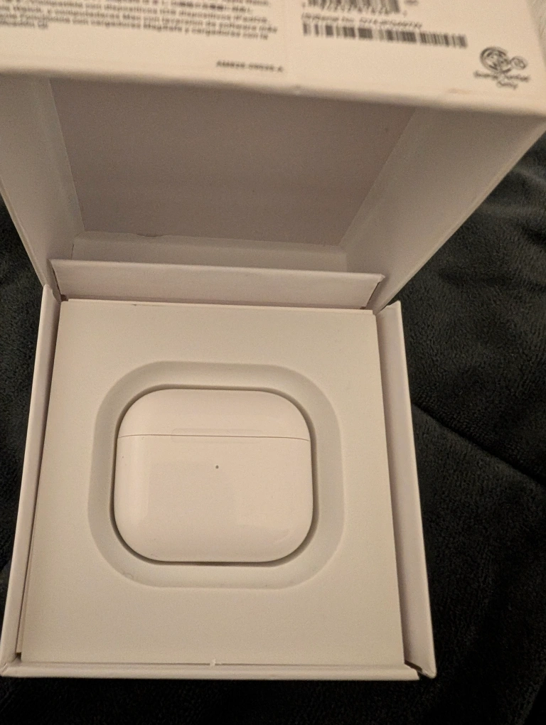 Apple AirPods with MagSafe Charging Case. Includes charging case and earbuds. Perfect gift. open box got as a gift use other ones no need for these