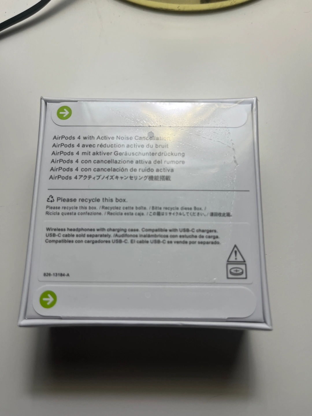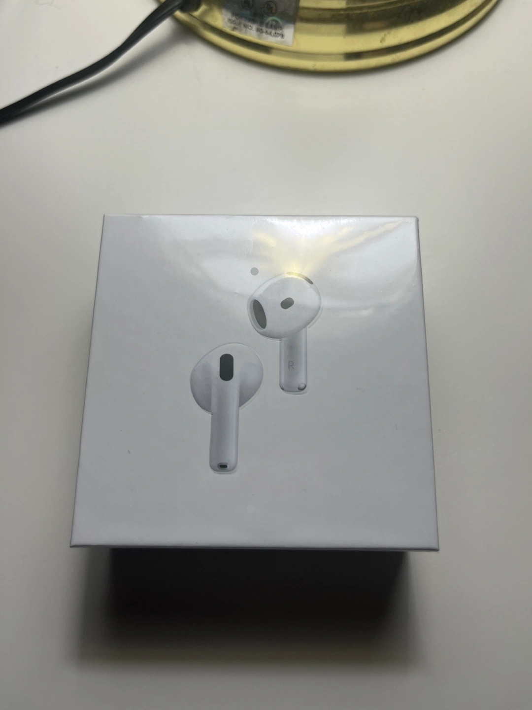 A new pair of AirPods in their original packaging. These are perfect for listening to music on your commute, or while you're relaxing at home.