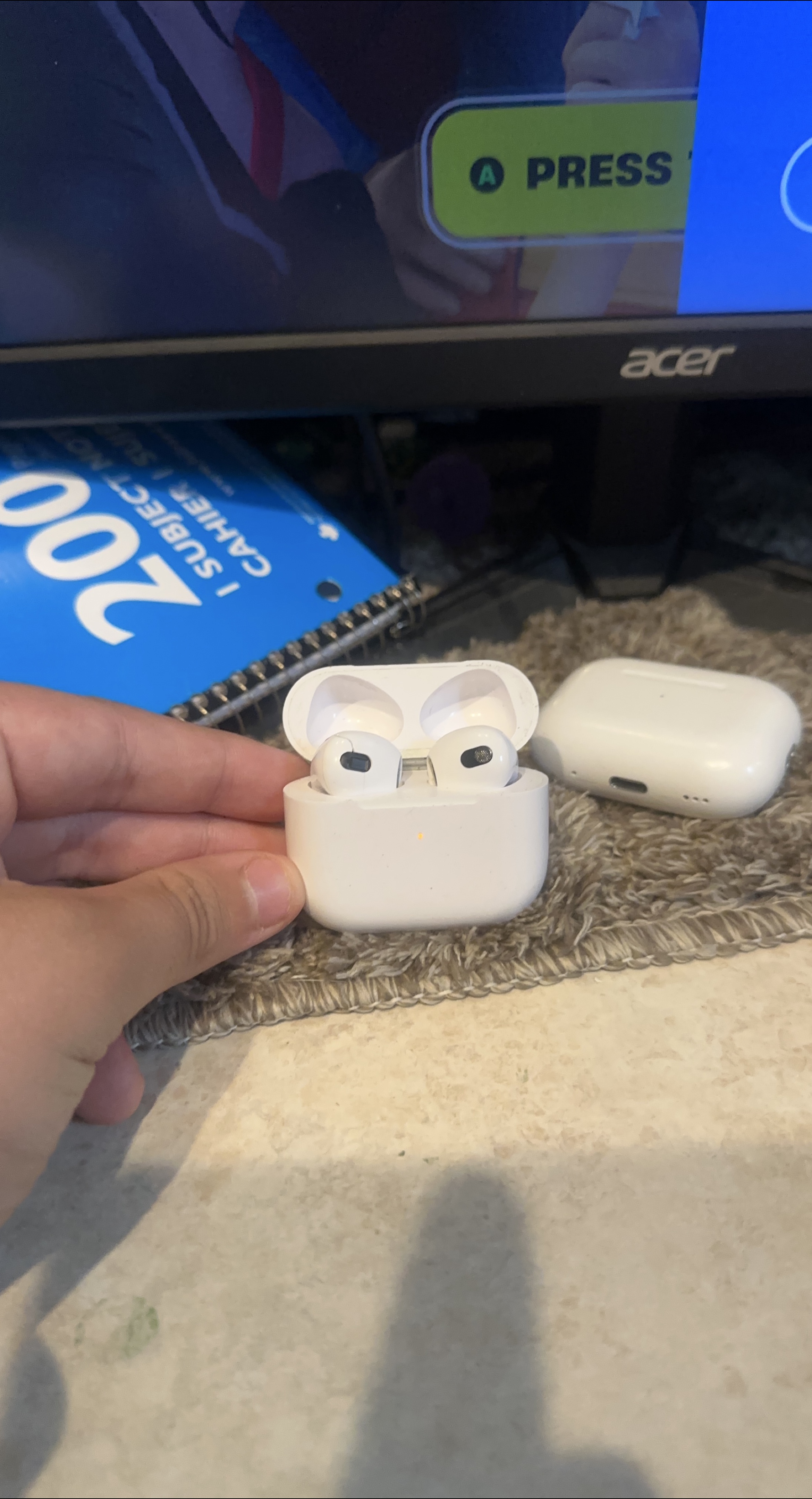 Selling a pair of Apple AirPods (3rd generation) in great condition! They come with the charging case. Perfect for listening to music or podcasts on the go