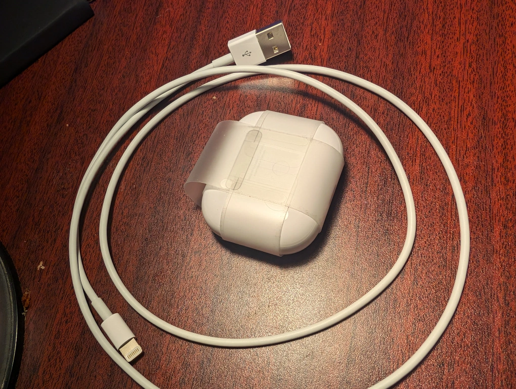 60Includes charging cable, earbuds,Charging case. Not even used once , I received it as a present but I am switching from IOS to Android, so I am not gonna use it anymore . asking 110 or OBO.