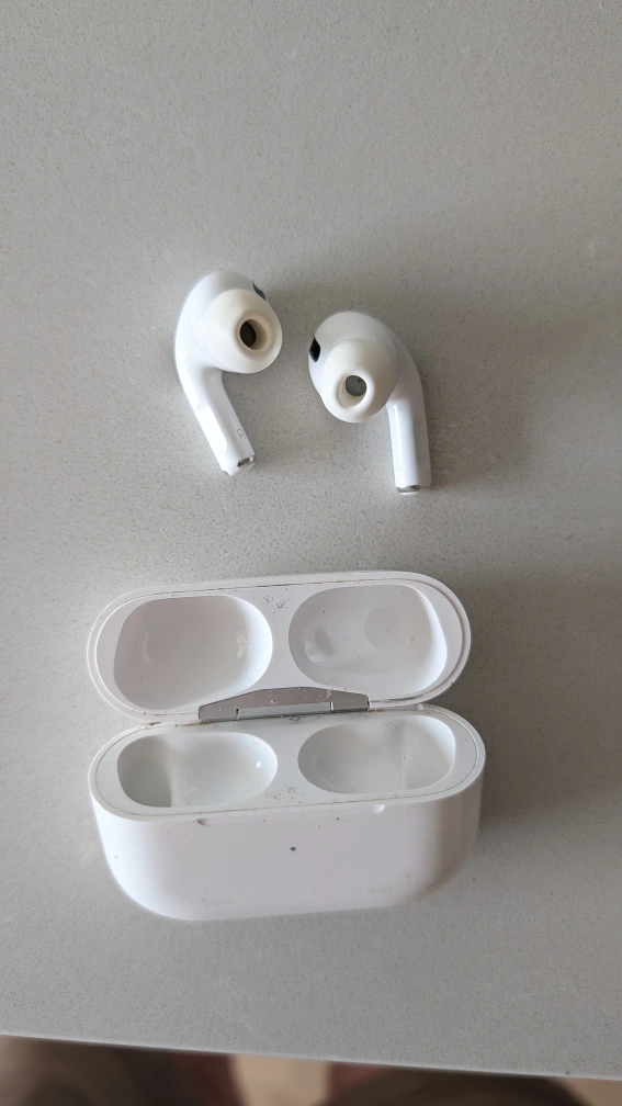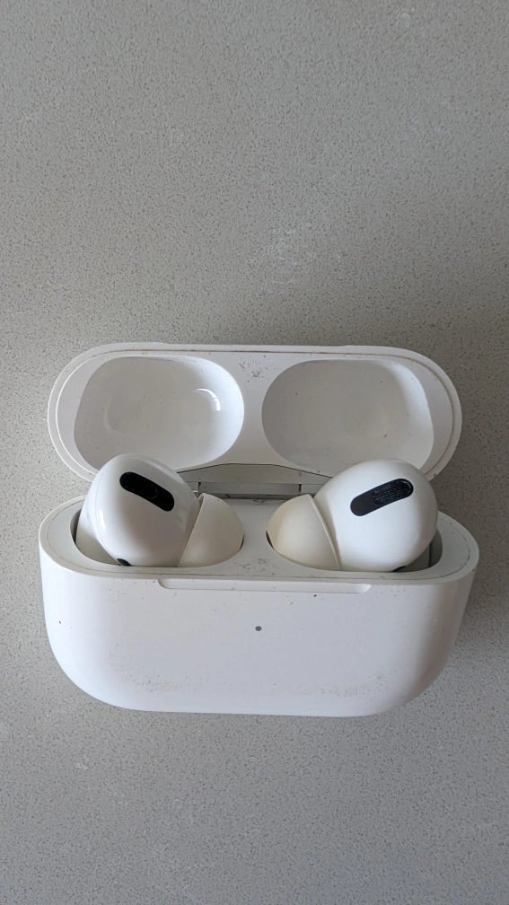 Selling a pair of Apple AirPods Pro 1st gen. They have some signs of use, as you can see in the photos. Comes with a red rubber case. still hold a charge and work great.
