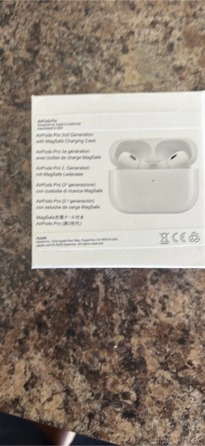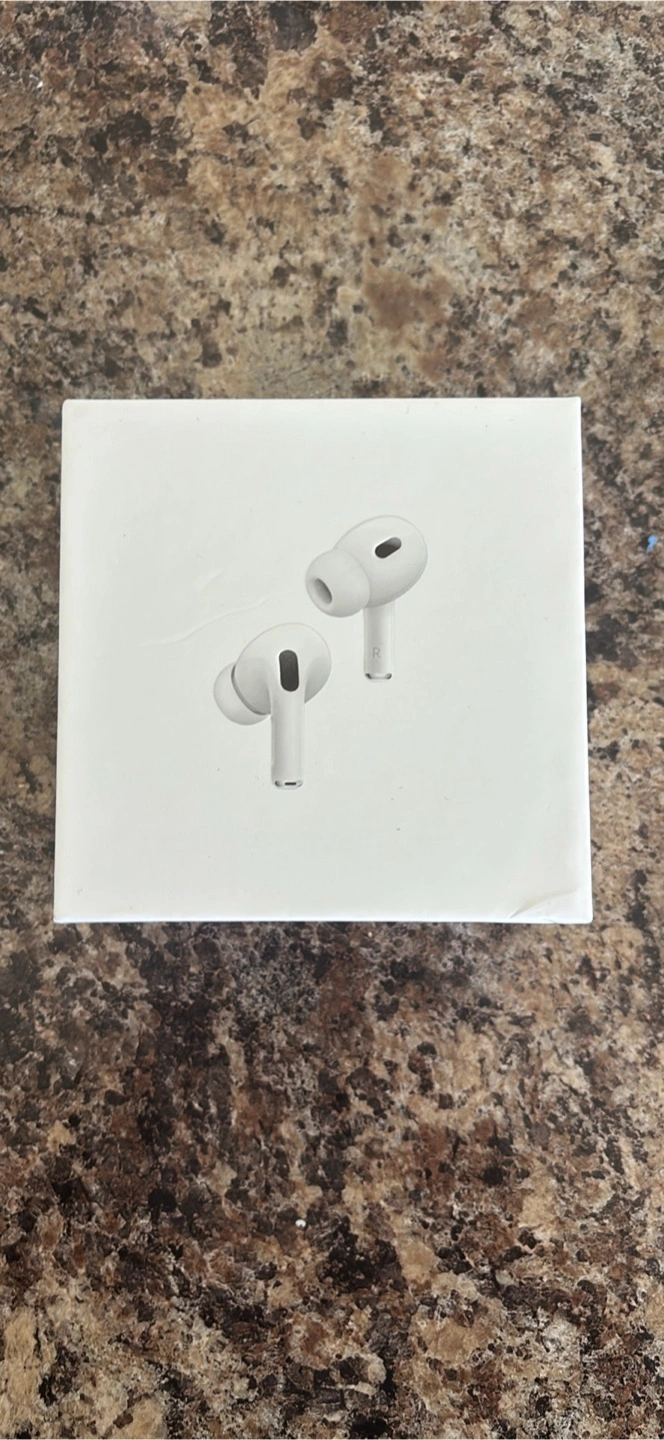 New, unopened AirPods Pro 2nd generation with MagSafe charging case. Includes charging cable. Designed by Apple in California. Assembled in China.