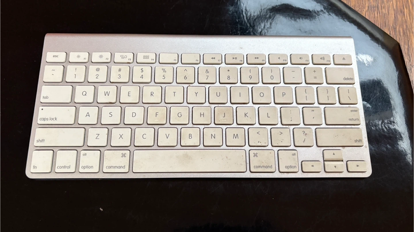 10Selling an Apple keyboard. It has some wear and could use a bit of cleaning, but it works perfectly fine! Wireless bluetooth keyboard uses AA batteries