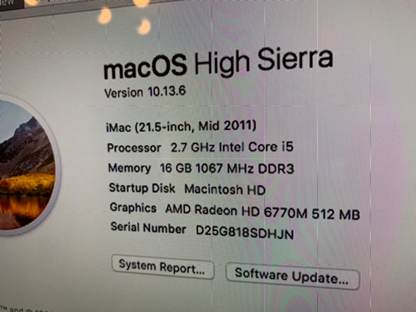 15iMac 21.5-inch, Mid 2011. 2.7 GHz Intel Core i5 processor. 16 GB 1067 MHz DDR3 memory. AMD Radeon HD 6770M 512 MB graphics. 1 TB SATA disk. macOS High Sierra Version 10.13.6 1TB storage good quality and no scratches. I go b.ack to hometown,so I sell it.