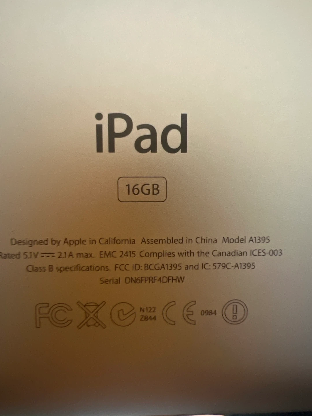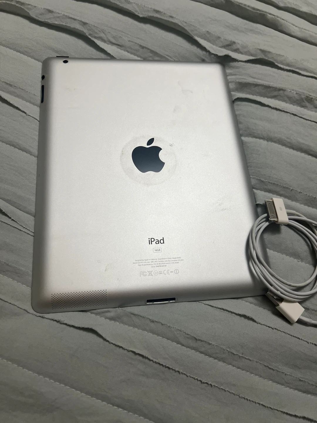 Selling a used Apple iPad 2nd generation in silver with 16GB of storage. It comes with a charger. Model number A1395.