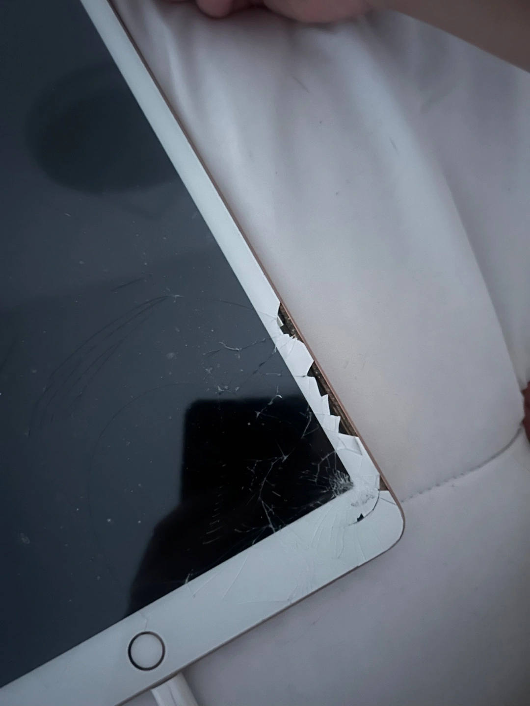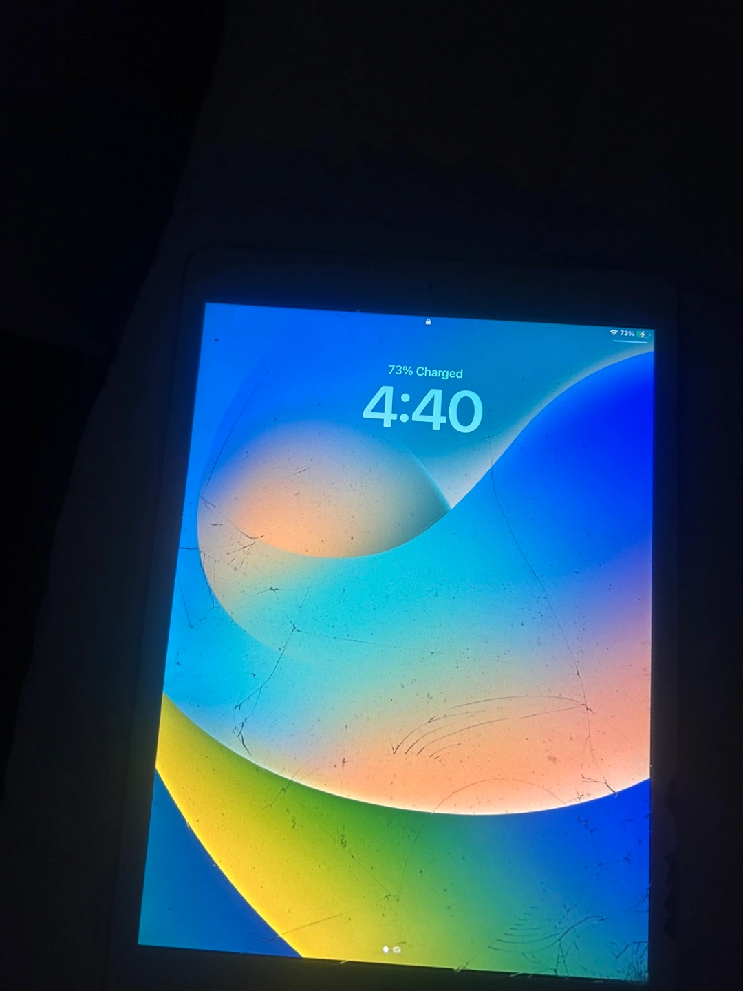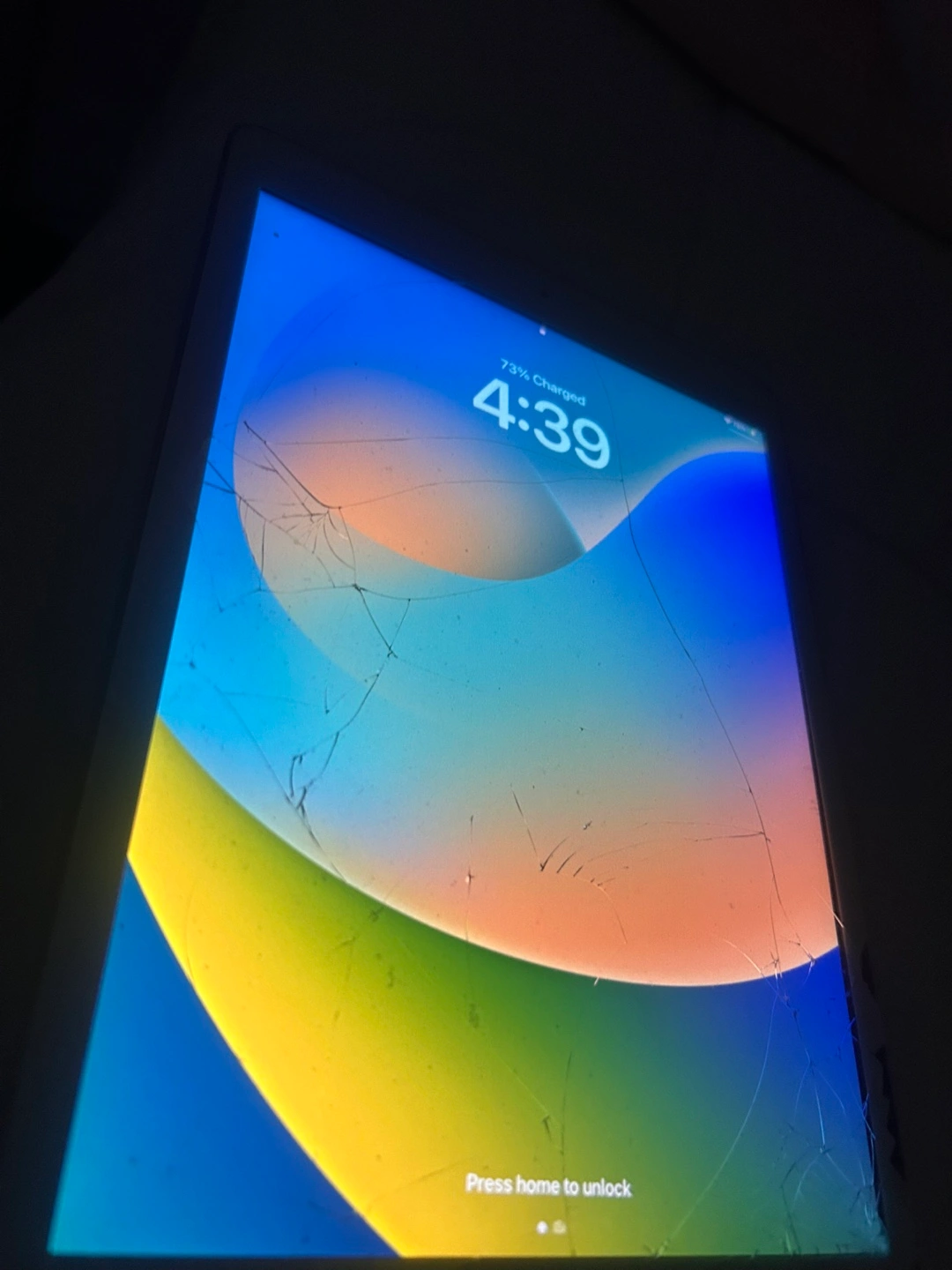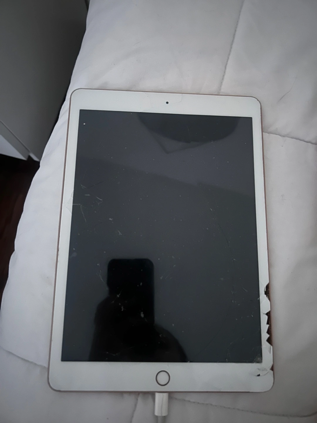 Selling an iPad that has seen better days. As you can see from the pictures, the screen is cracked and there's some damage to the side. Still works great, great battery life.