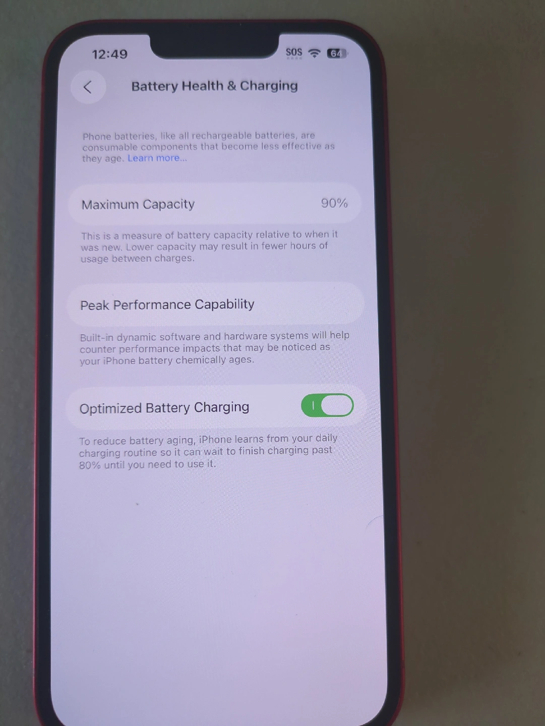 12Selling an iPhone 13 in red. It's in great condition and ready for a new owner! Feel free to ask any questions Grade A condition, no marks or scuffs, photo shows dust specs not scratches