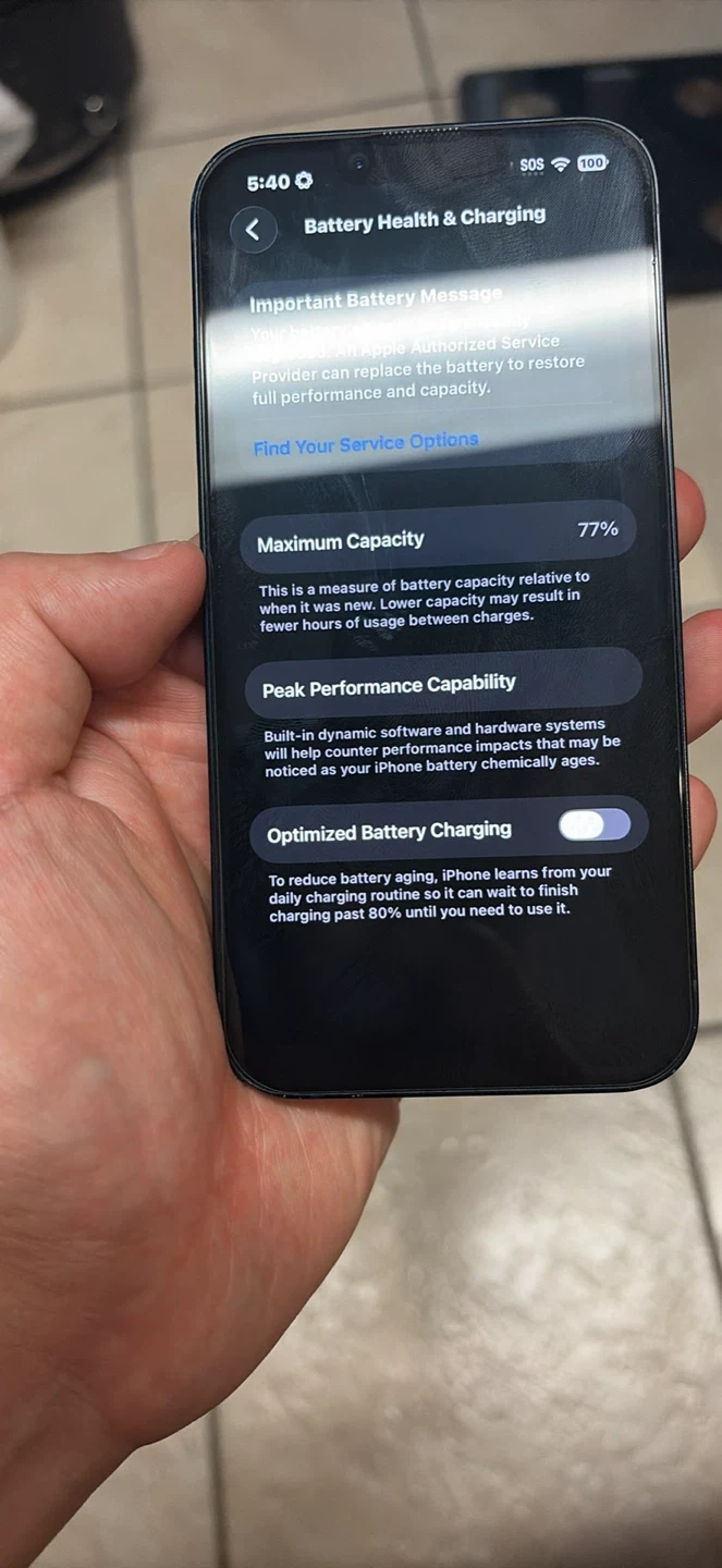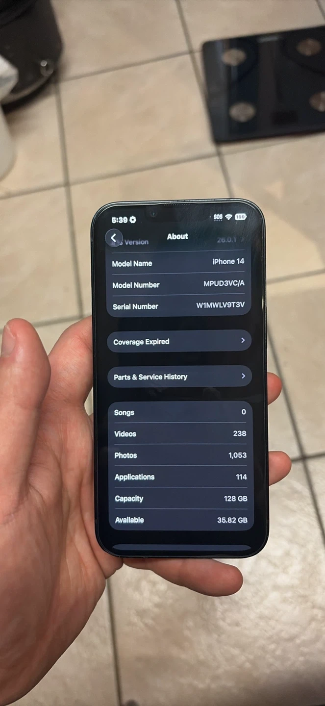 75Selling an iPhone 14 with 128GB of storage! The model number is MPUD3VC/A. The battery health is at 77%.