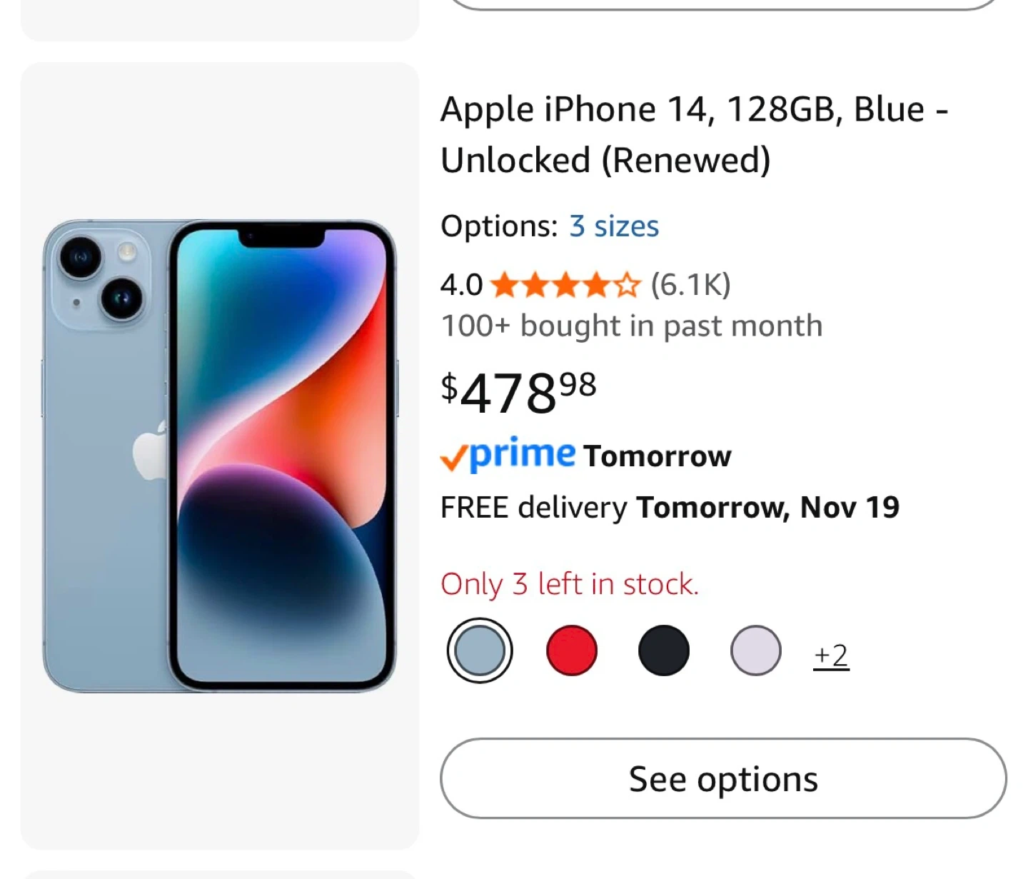 42Selling an unlocked iPhone 14 in Midnight with 128GB of storage! It comes with the box. The battery health is at 86%. Phone has been in an otterbox from day one, we are upgrading our phone so no longer need.