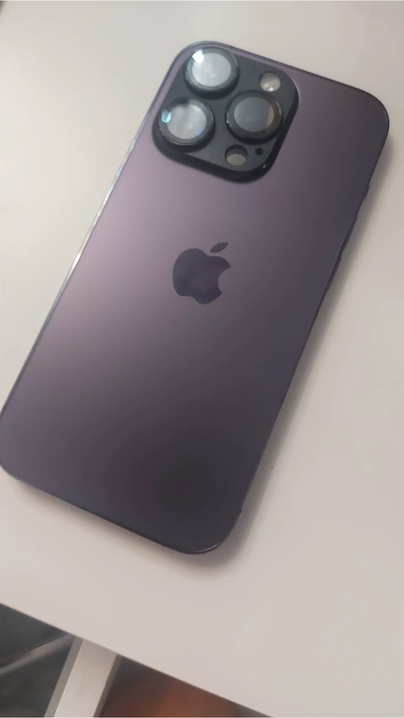Selling an Apple iPhone 14 Pro 256G in Deep Purple. It's in great condition. It already has a camera lens protector on it. I’ll also give you a screen protector and an extra camera protector.