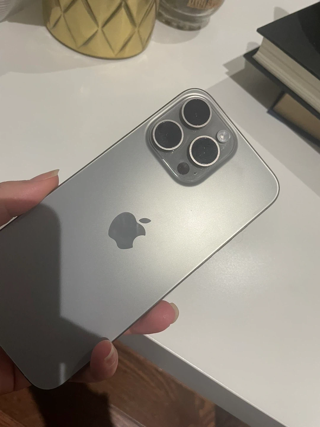 10Model: Apple iPhone 15 Pro Max •Storage: 256 GB •Color: Natural Titanium •Condition: Refurbished – Perfect condition •Battery Health: 90% •Manufacture Date: July 2023 •First Use: September 2023 •Purchased (Refurbished): January 12, 2025 •Includes: Original box + brand new USB-C charger Works excellent till this day as if it’s brand new (Not broken it’s a screen protector) OPEN TO NEGOTIATE