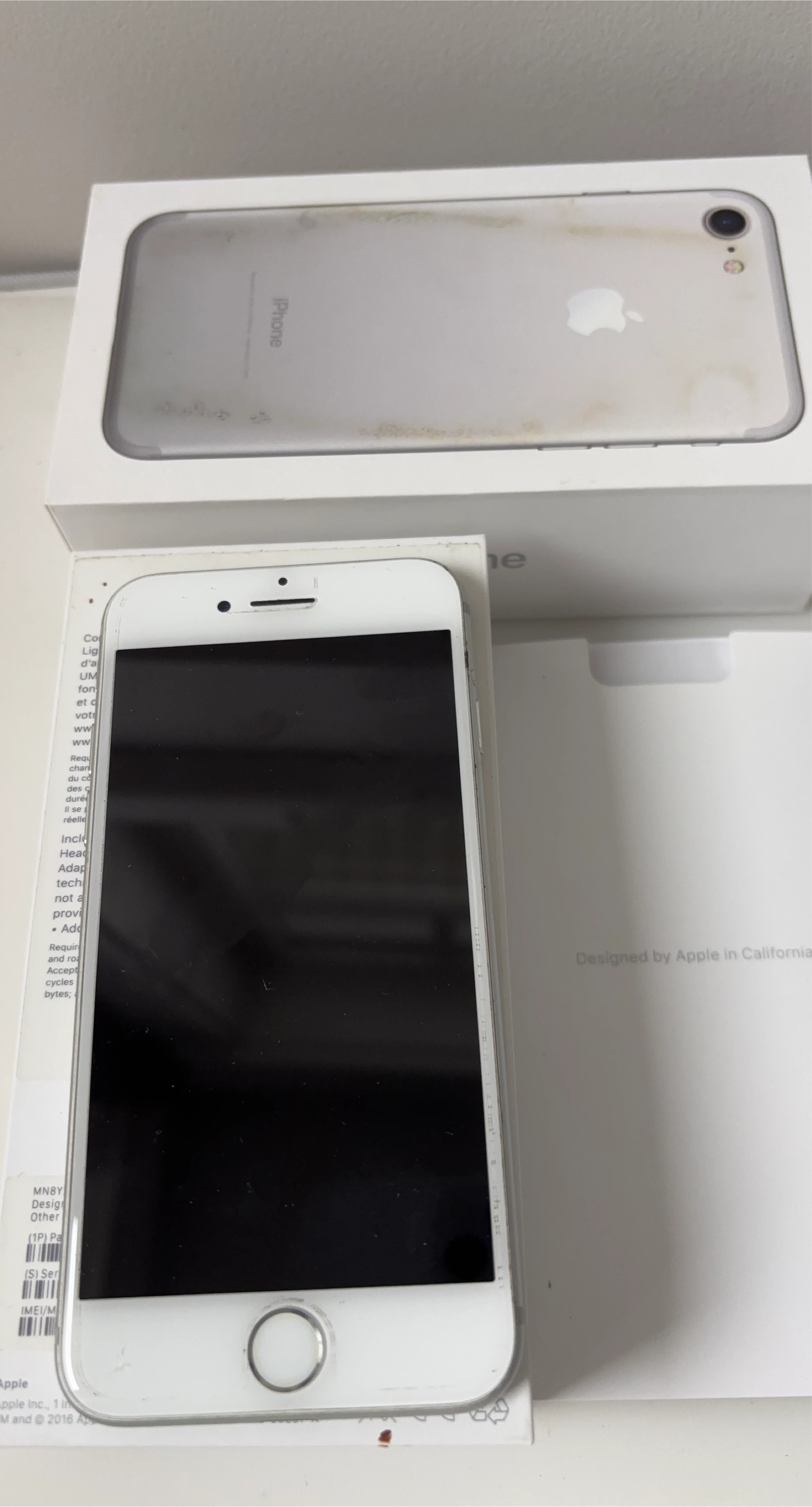 Selling an Apple iPhone 7 in silver with 32GB of storage. It comes with the original box and is ready for a new home. Pick up north Burnaby.