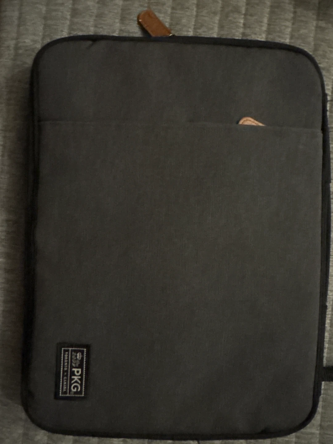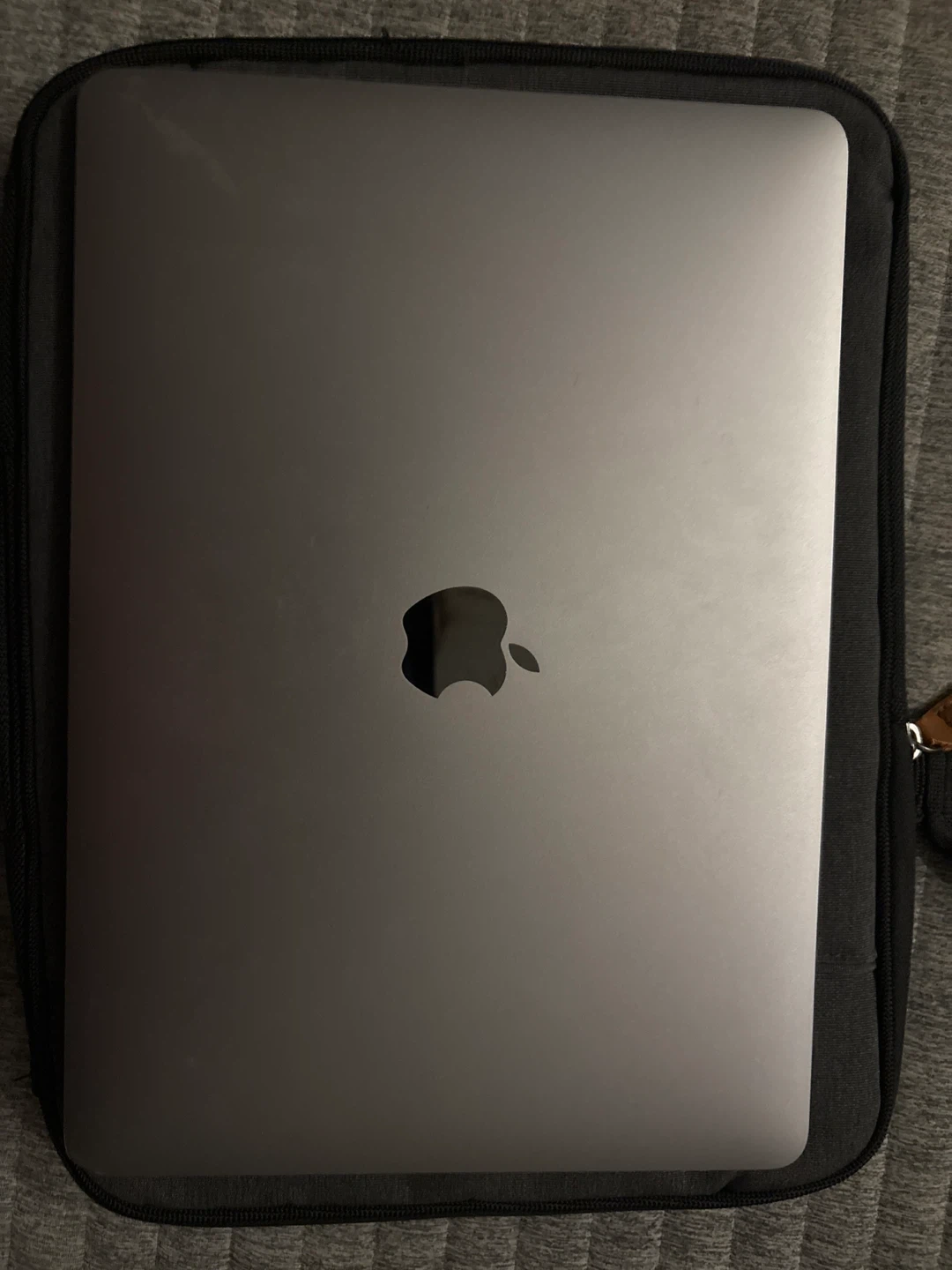 65Selling a laptop sleeve from PKG, perfect for your Macbook! It's in great condition and offers good protection for your device. The sleeve is a stylish grey color and fits snugly around the laptop, preventing it from moving around too much during transport