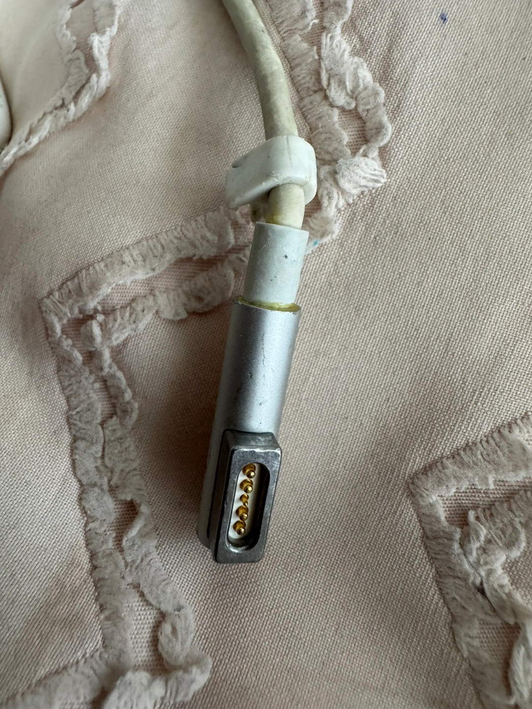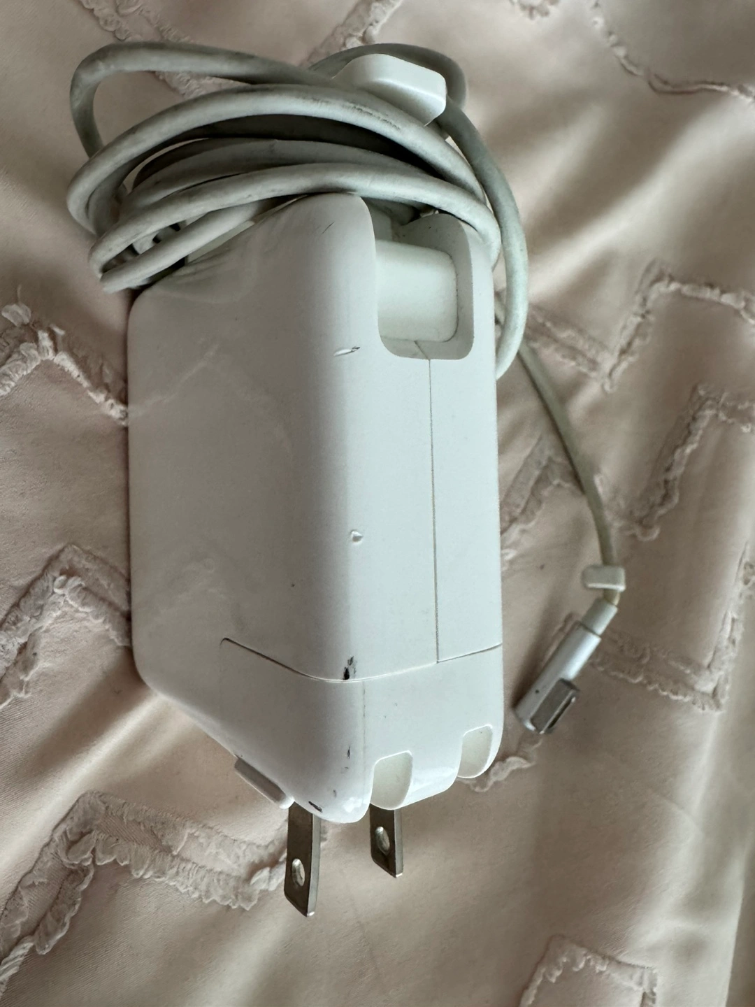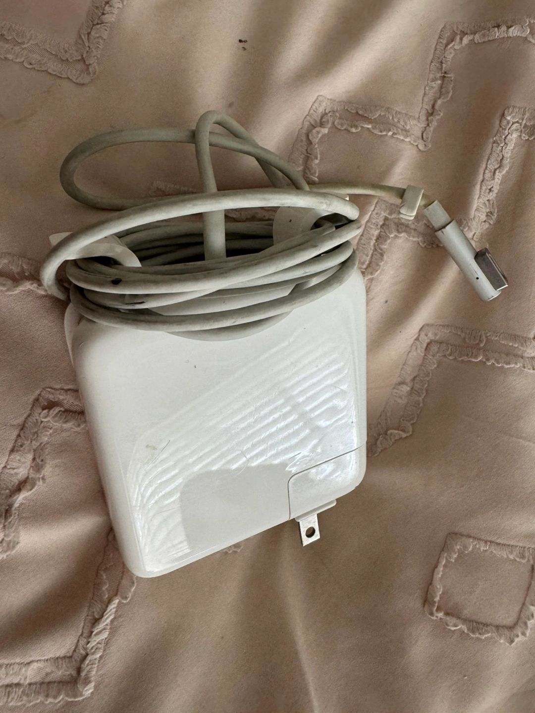 93Selling an Apple MacBook charger. It has some signs of use, as you can see in the photos. It's still fully functional and ready to power your MacBook!