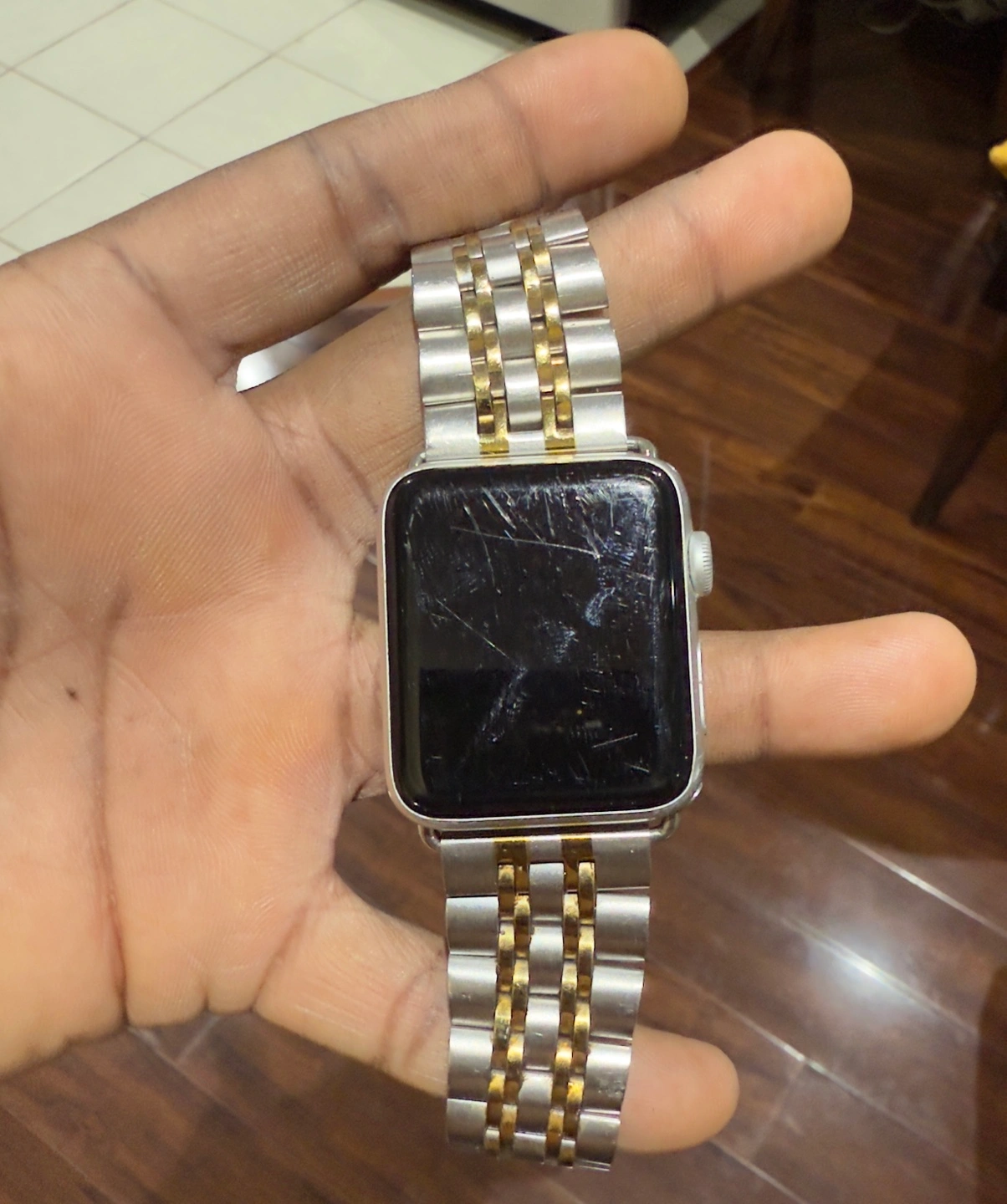 Selling a bundle including a MacBook Pro Retina mid 2012 for parts (no flash storage inside) and an Apple Watch Series 2. MacBook Pro shows some wear. Apple Watch screen has scratches but fully functional. Both items are used. Price is negotiable. Reasonable trades are considered.