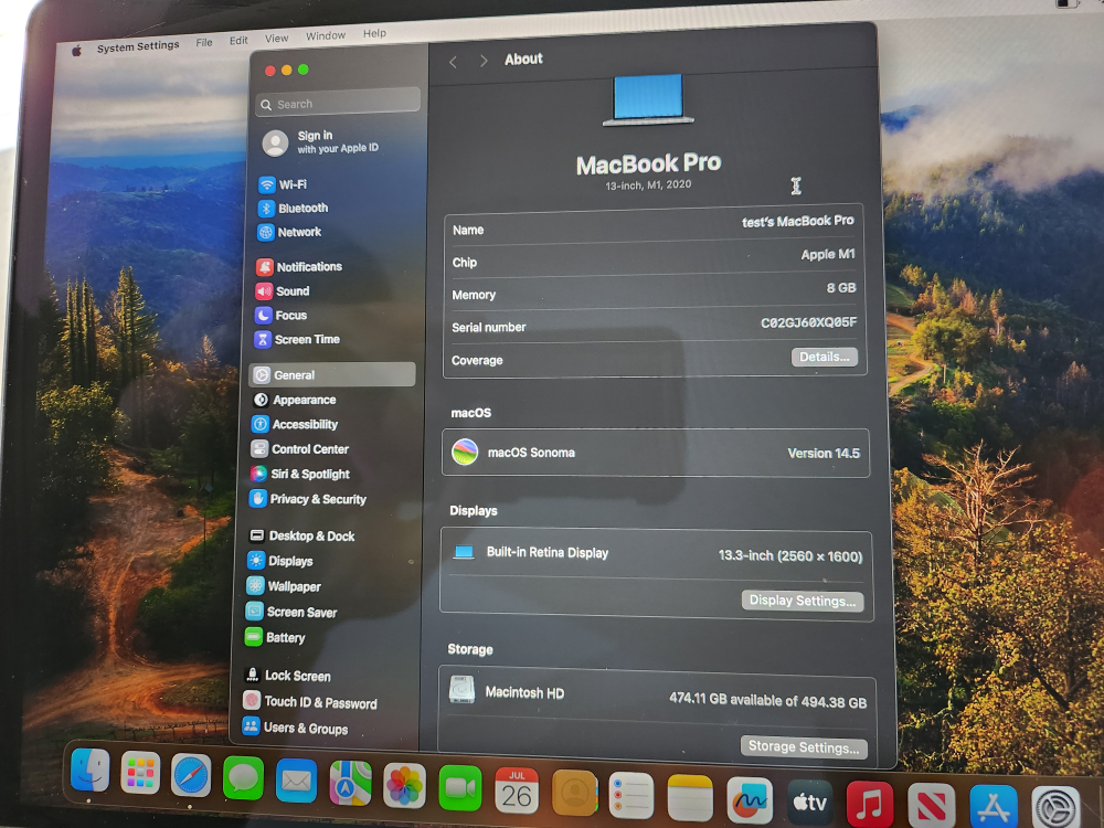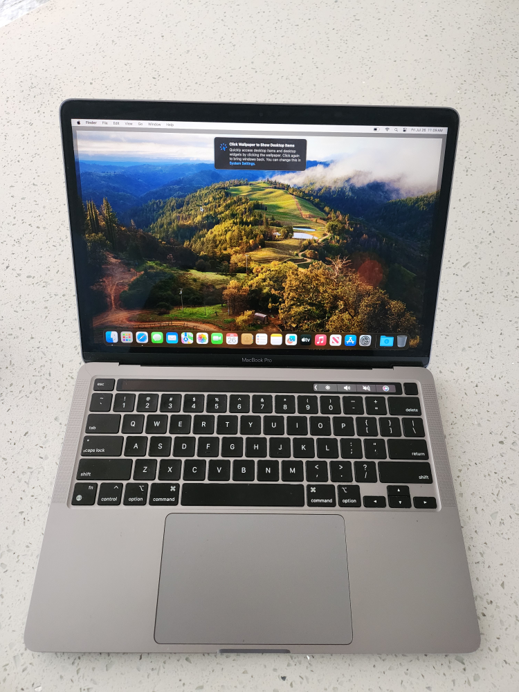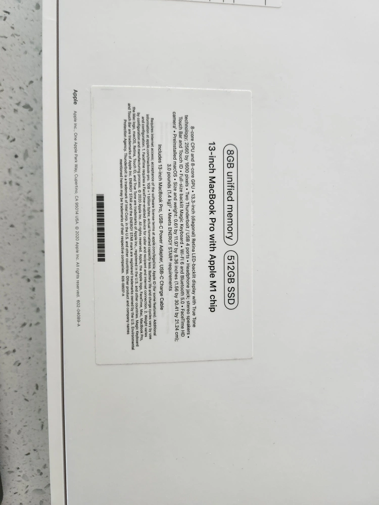 10This is an immaculate condition 13.3 inch Apple Macbook Pro M1 ( Apple Silicon) with Touchbar. specs are 8gb unified ram and 512 gb SSD. battery is at 87%. comes with box and charger